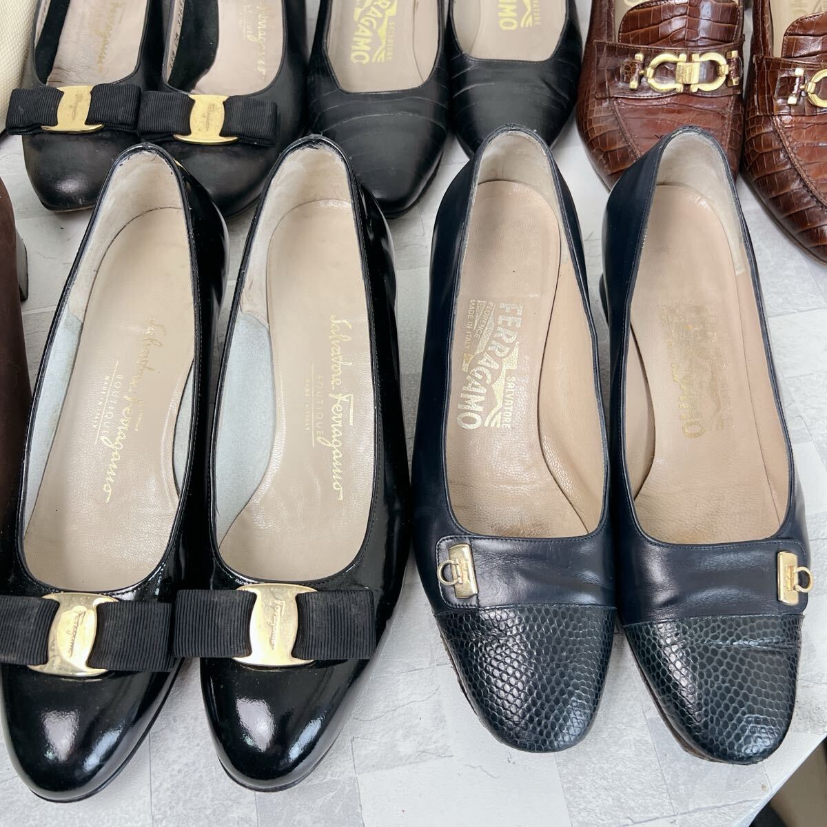 Salvatore Ferragamo サルバトーレフェラガモ フェラガモ ヴァラ ガンチーニ クロコ、リザード型押し まとめ売りセット売り