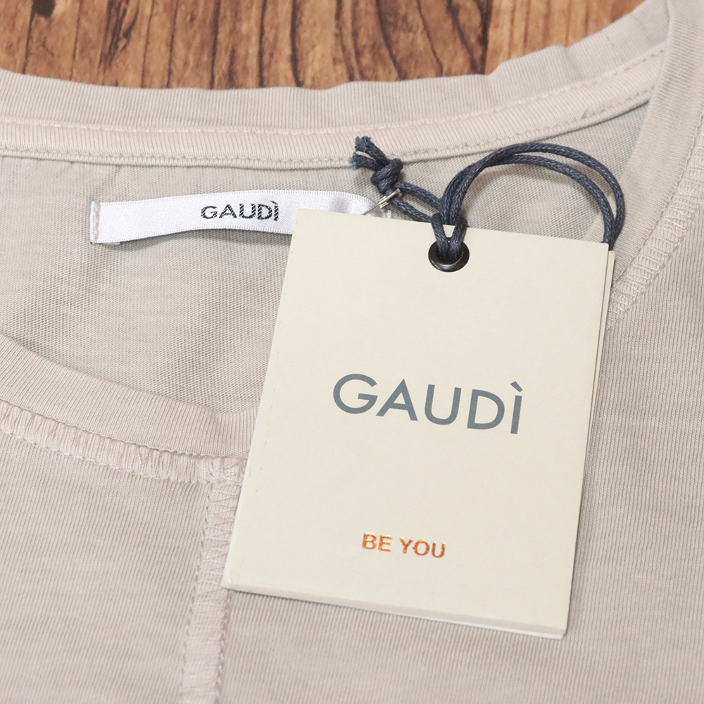 GAUDI/Lサイズ/半袖Tシャツ C521GU64023 センターシーム 切替デザイン 綿100% ガウディ 新品/ベージュ/mc324/