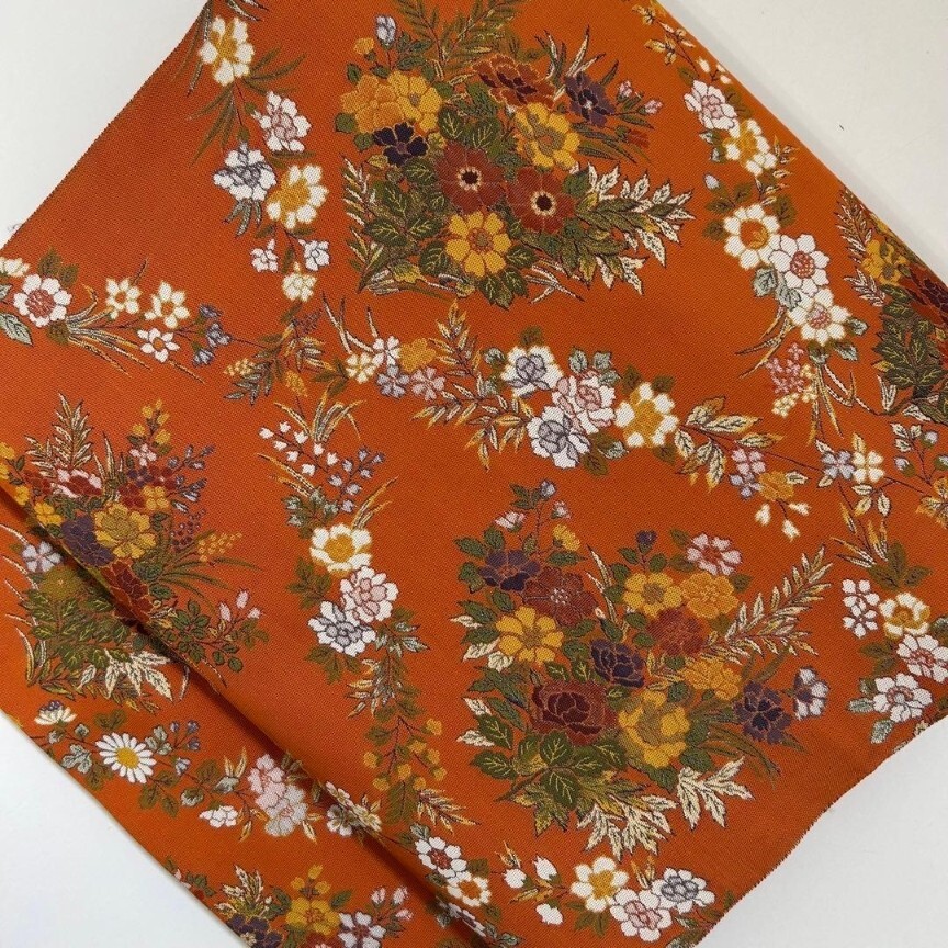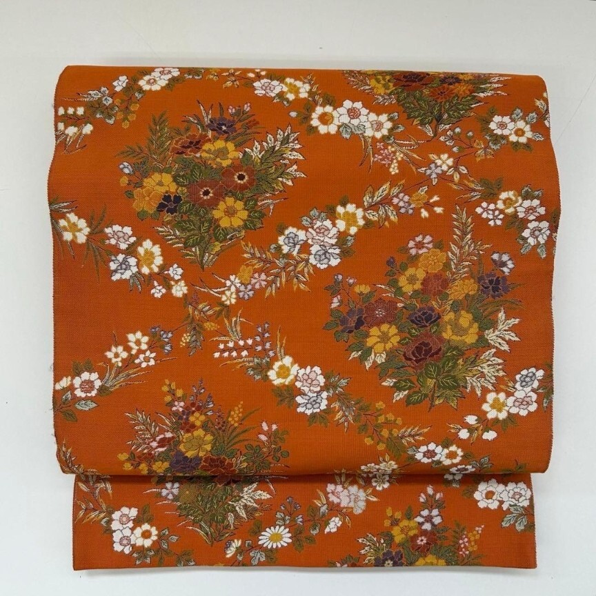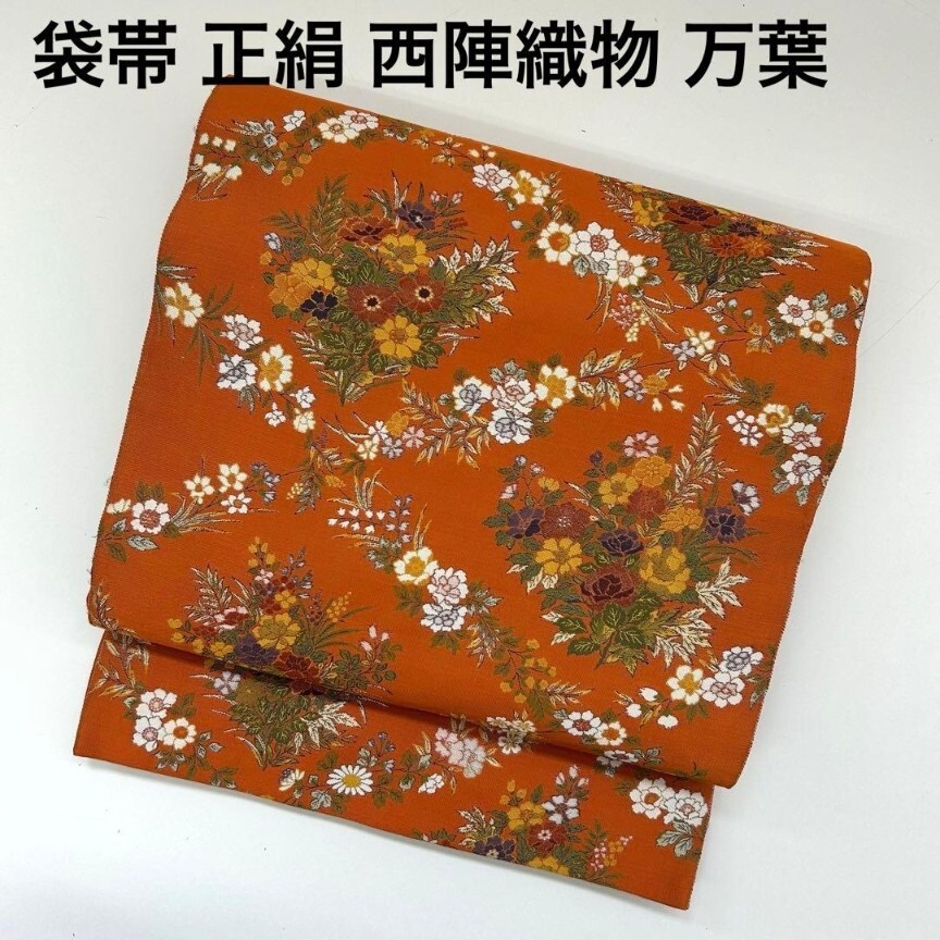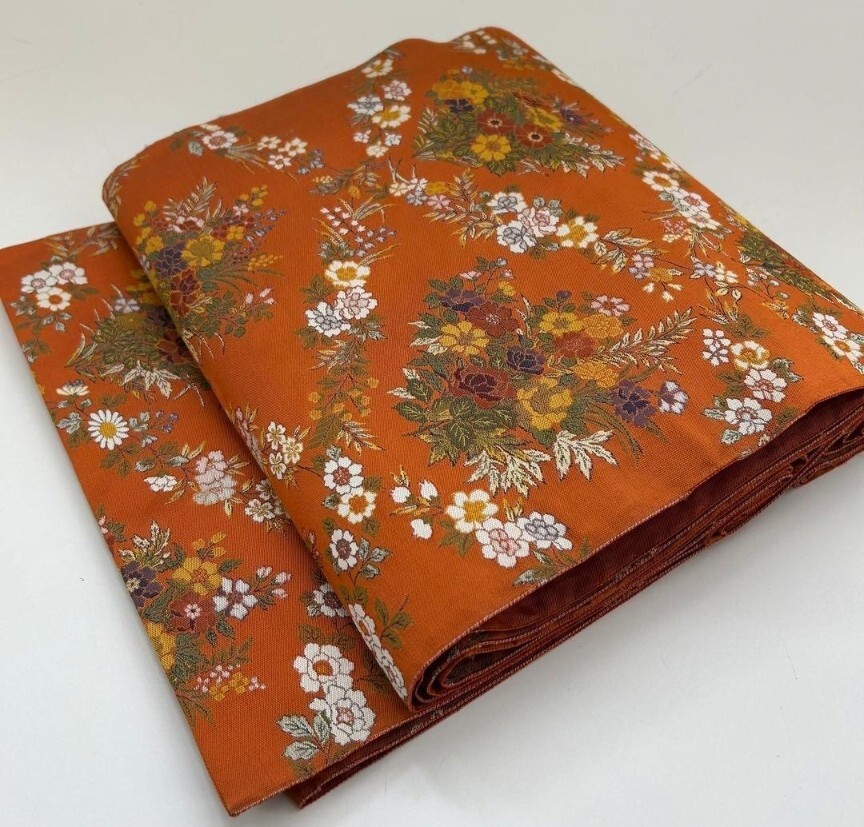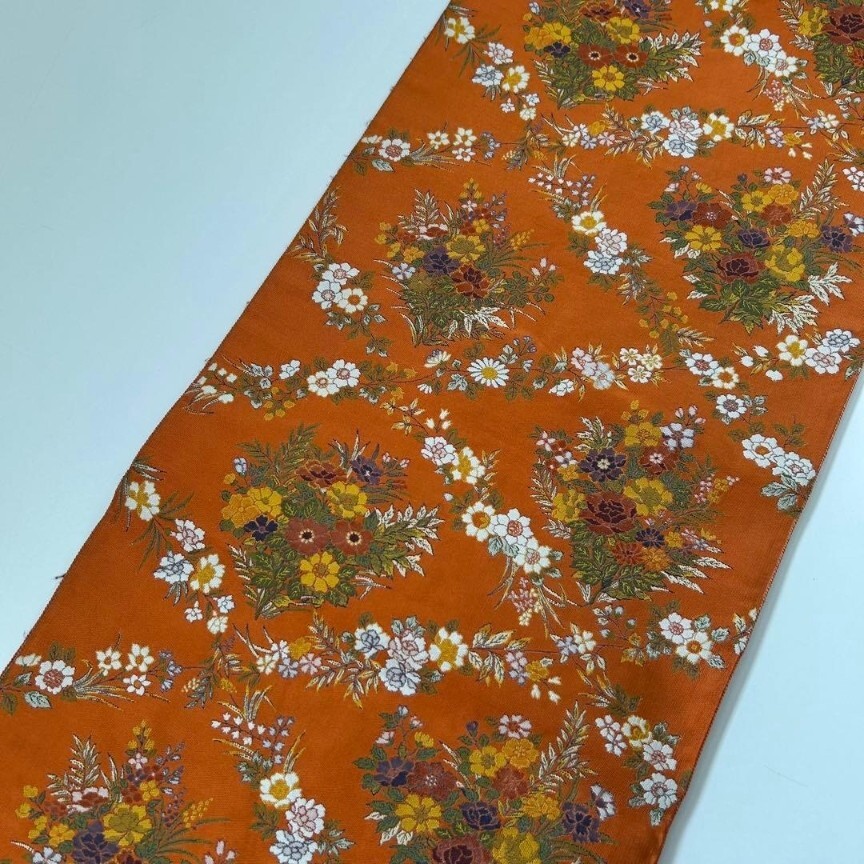 【楓】袋帯 正絹 西陣万葉 お華の菱模様 素敵なデザイン オレンジ KU-2062