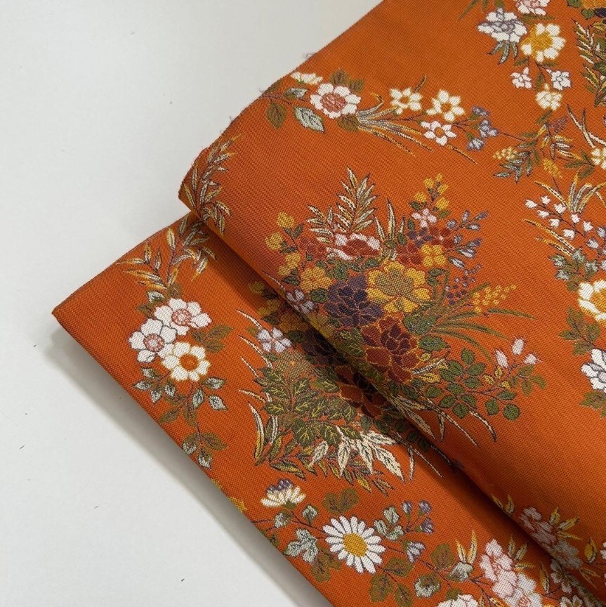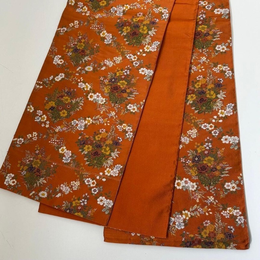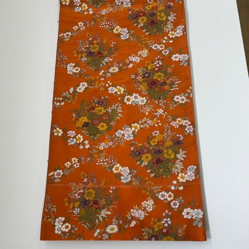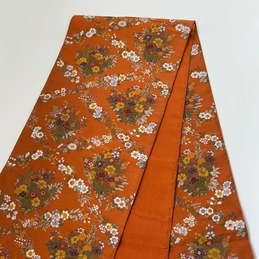 【楓】袋帯 正絹 西陣万葉 お華の菱模様 素敵なデザイン オレンジ KU-2062