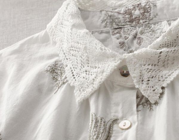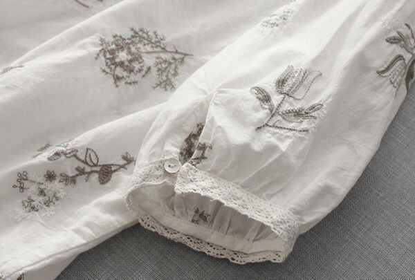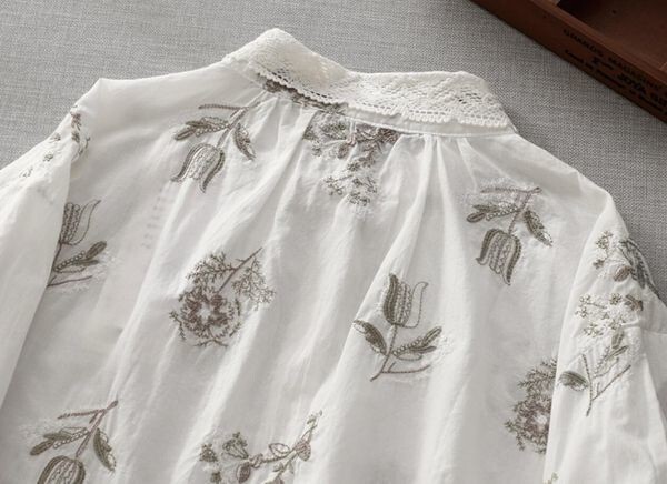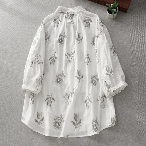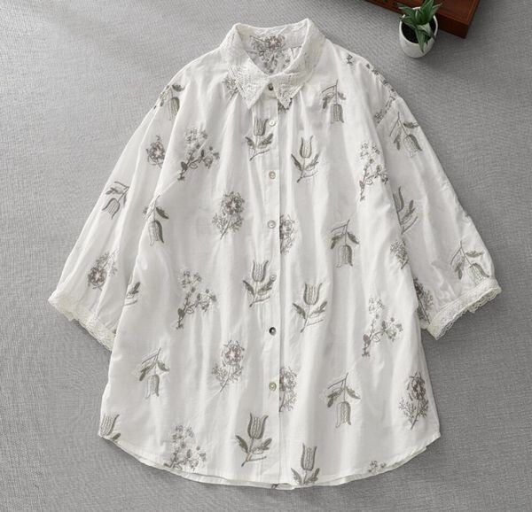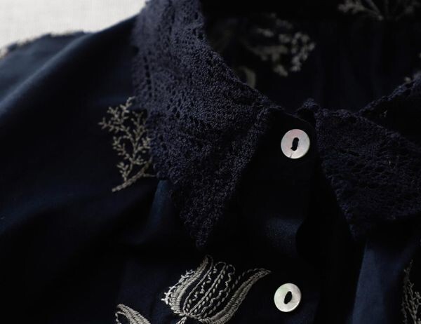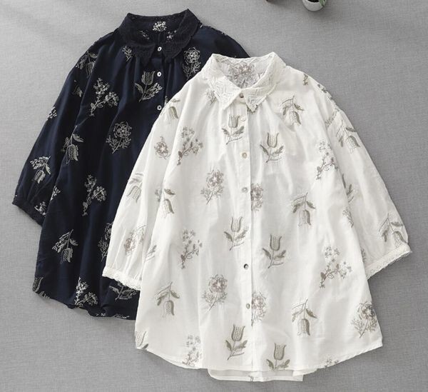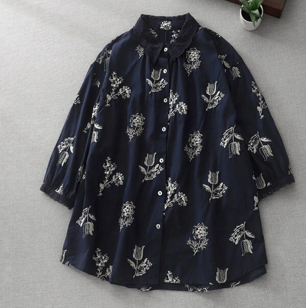 レディース ブラウス シャツ ゆったり 秋 冬 M-2XLサイズ夏 チュニック お花 刺繍り 大きいサイズ 半袖 トップス紺