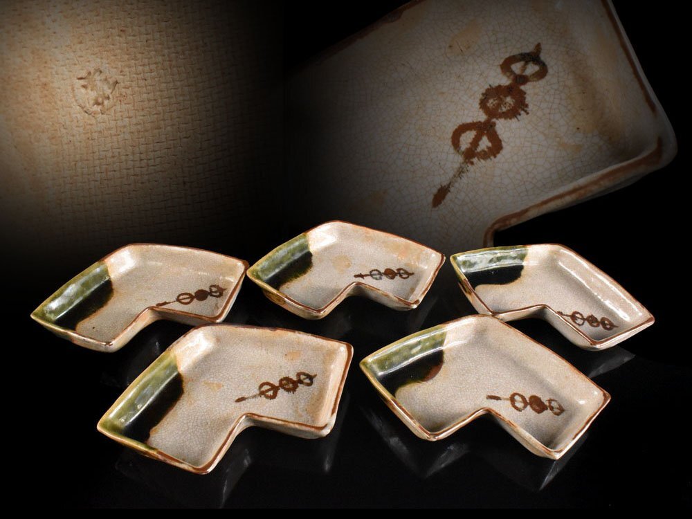 | 商品名 | 【雲】某収集家放出品 織部 緑釉 向付 小皿 5客 14.2×19.5×3㎝ 古美術品(懐石料理道具 変形)AY6394 CTDkjh PBokj |