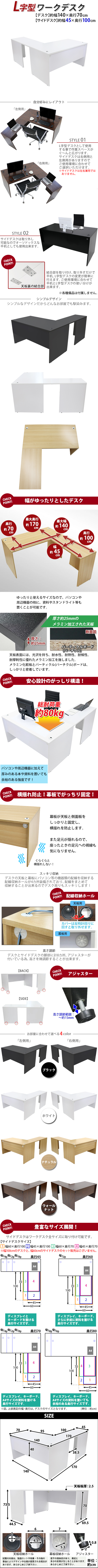 | 商品紹介 | ■作業スペースを広く確保出来る、L字型ワークデスクです。 ■サイドデスクの幅が約45cmのタイプです。 ■会議室や事務所等、オフィス家具として様々なシーンでお使いいただけます。 ■天板には、メラミン加工を施しています。 ■幕板が天板と側面板をがっちりと固定!横揺れを防止します。 ■ネジ穴隠しのシール付き。(サイドデスクのみ付属) ■デスクの天板と幕板に配線収納ホールが2カ所ずつ備わっています。 ■アジャスターで高さの調節が可能です。(高さ調節範囲〜約15mm) ※こちらの商品は、組立て式です。組立てにはプラスドライバーが必要です。お客様でご用意ください。 ※組立図が付属します。 ※サイドデスクの取り付けはデスクの右側専用となります。 ■材質:パーティクル(パーチクル)ボード(メラミン加工)(本体、サイドデスク)、プラスチック(アジャスター、配線収納ホール) ■重量:約51kg(デスク:約35kg、サイドデスク:約16kg) ■総耐荷重:約80kg ●新品商品ではありますが、輸入商品の為、多少の擦り傷などがある場合がございますので、ご納得の上ご購入下さいませ。 ●ご購入後、お客様ご都合によるご返品、ご返金等は一切お受け致しておりません。 ●本商品を使用した際に発生したトラブル、事故につきまして、当社は一切の責任を負いません。ご使用に関しましては、全て自己責任にてお願い致します。 ※カラーはホワイトとなります。 |