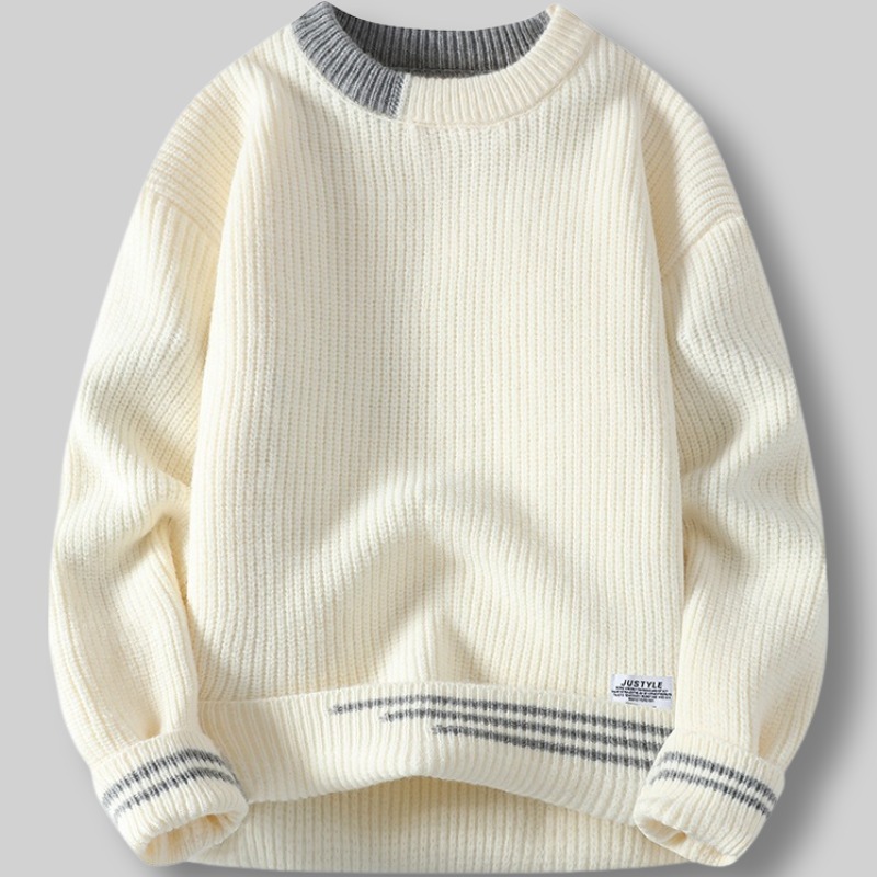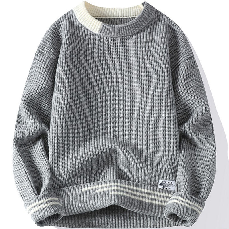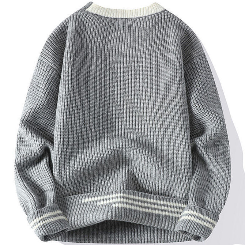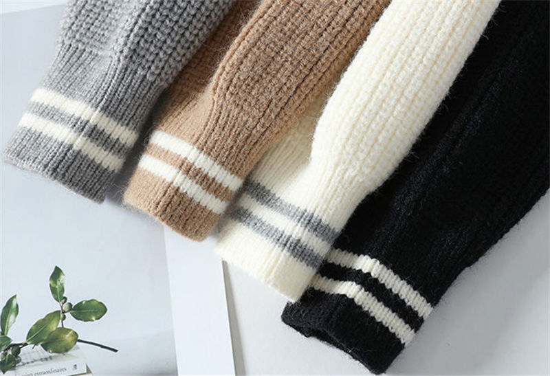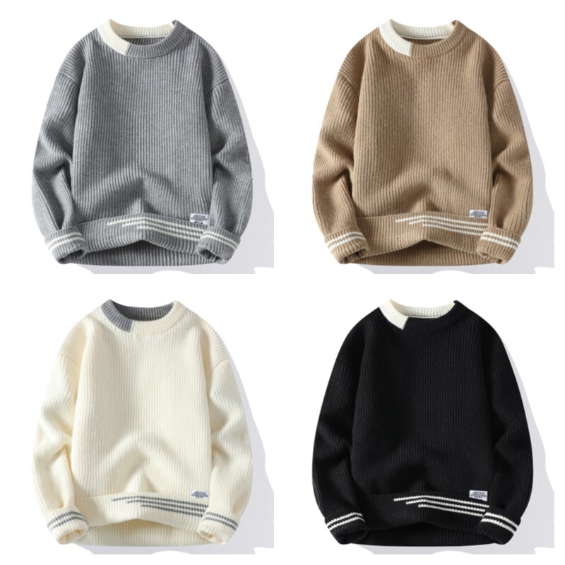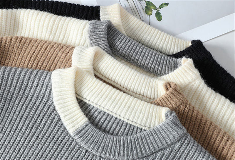 G163-2XL新品DCKMANY ウール混 リブ編みニット セーター 柔らかい 無地 厚手 暖かい 長袖 メンズ 冬 ラウンドネック プルオーバー/ベージュ