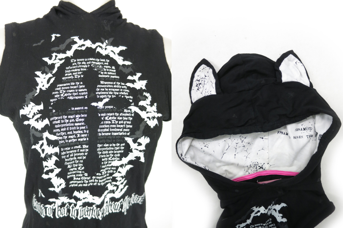 商品説明 CHANNEL H 猫耳フード付きノースリーブカットソー コウモリ&英字プリントが入った、猫耳フード付きノースリーブカットソーです。 腕周りのリブ伸び、毛玉毛羽立ち、フード内側黄ばみが見られます。 ●状態 使用感があり、傷や汚れが見られますが、まだまだ十分お使いいただけるお品です。 ●サイズ 実寸:身幅38 着丈50.5(cm) ※多少の誤差はご了承ください。 素材:本体綿100% リブ綿95% ポリウレタン5% 伸び止めテープ ポリエステル100% 色:黒 発送方法 ●ヤマト運輸 元払い全国一律600円 (沖縄は1600円になります。) ●同梱【まとめて取引】について 同梱ご希望の方は【取引をはじめる】の前に、必ず【まとめて取引をはじめる】ボタンを押して下さい。 【☆何点買っても600円☆】複数落札時の同梱も可能です。 * 最初の落札から72時間以内に落札した商品のみ【まとめて取引】がご利用できます。 * 評価6未満の方は【まとめて取引】機能が利用できませんので単品ごとのお取引になります。 ●土曜、日曜、祝日は業務をお休みさせていただきます。 (年末年始・GW・お盆などの大型連休期間もお休みとさせていただきます) お問合せのご返信や発送等は平日48時間以内にご対応させていただきます。 その他 ●付属品等につきましては画像に写っているものが全てとなります。 ●中古品に関しましては目立つダメージ・汚れのみの掲載になります。軽微な傷汚れ等の掲載漏れはご容赦ください。 ●値引きや早期終了の交渉はお受けいたしておりません。 ●落札者様都合による返品はお受けいたしかねます。(試着して似合わなかった、画像と実物でイメージが違った、色味が違うなど) ご不明な点などがございましたら質問欄よりお気軽にお問い合わせください。 |