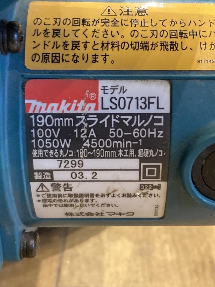 マキタ ■商品名 190㎜スライドマルノコ ■型番 LS0713FL |