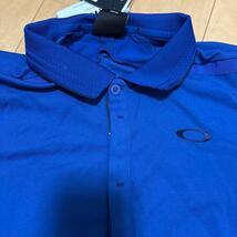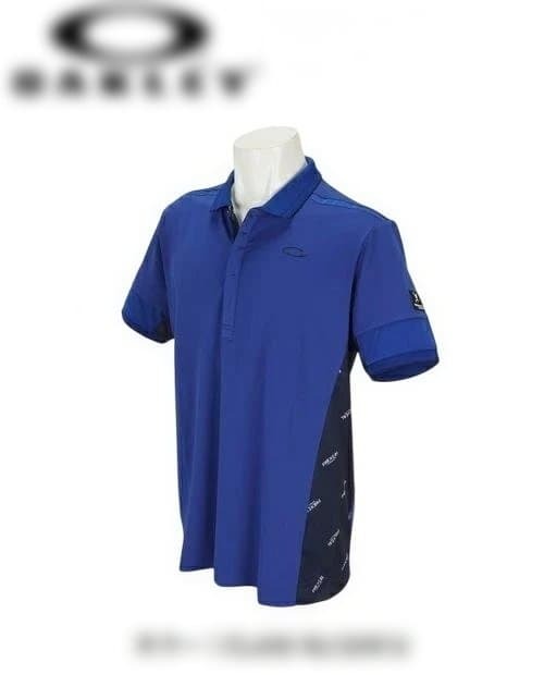 吸汗速乾性の青いポロシャツ、Oakleyロゴ付き。 ブランド OAKLEY オークリー アイテム 半袖ポロシャツ スカル