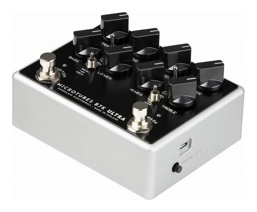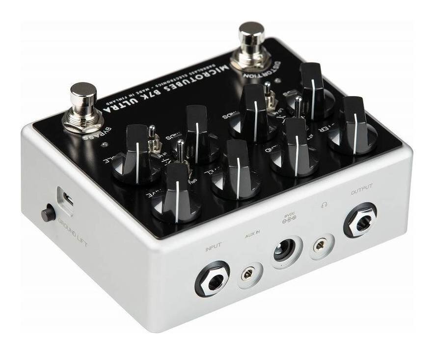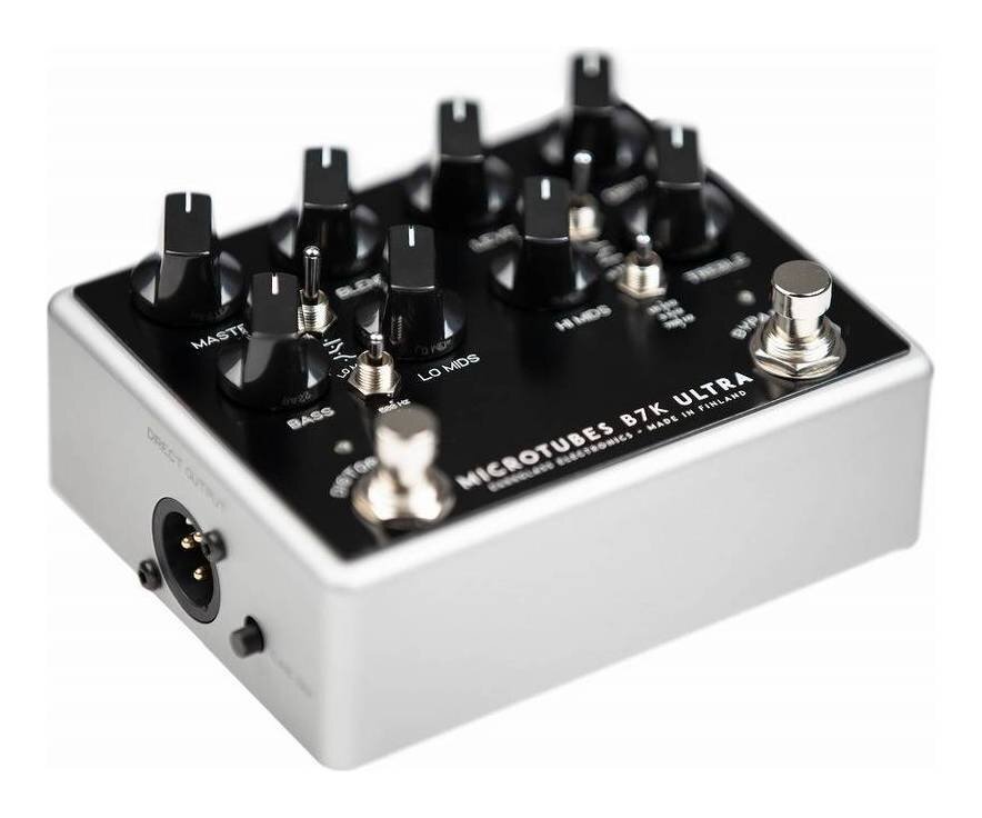 | MICROTUBES B7K ULTRA V2 アップグレードしたMicrotubes B7K Ultra v2は、v1よりもさらに多彩な機能とサウンドの可能性を備えています:(1)キャビネットシミュレーションのインパルスレスポンス(IR)をロード可能。(2)Micro-USB BポートからPC/Macに接続し、Darkglass Suiteソフトウェアを使用してヴァーチャルキャビネットをロード可能。(3)キャビネットシミュレーション内蔵3.5mmヘッドフォンアウトを装備。(4)キャビネットシミュレーションのON/OFFが可能なバランスドXLRアウトを装備。 Features Master B7K Ultra全体のボリュームを調整します。クリーン・モードの出力の微調整を行うのに理想的です。D.Iアウトのレベルコントロールとして使用することもできます。 Blend クリーンシグナルとオーバードライブシグナルのミックスバランスをコントロールします。オーバードライブシグナルのボリュームをコントロールするLevelノブの設定に関わらず、クリーンシグナルはユニティ・ゲインとなっており、ミックスするバランスの微調整をBlendノブで行います。 Level オーバードライブシグナルのボリュームを設定します。 Drive オーバードライブシグナルのサチュレーションの量を設定します。 Attack Switch サチュレートさせた時の高域の量を設定します。”Boost” セッティングではプレゼンスを強調し、よりクリアなサウンドになります。”Flat” ポジションは音色に影響を及ぼしません。”Cut” ポジションでは高域の量を減少させ、暖かみのあるサウンドになります。 Grunt Switch クリッピングステージ前の低域のブーストレベルを3モードから選択し、低域の強さを設定します。 Bass 100Hzを中心周波数として ±12dBまでブースト/カットします。 Lo Mids 250Hz、500Hz、1kHzの中から選択した周波数を中心周波数として ±12dBまでブースト/カットします。 Hi Mids 750Hz、1.5kHz、3kHzの中から選択した周波数を中心周波数として ±12dBまでブースト/カットします。 Treble 5kHzを中心周波数として ±12dBまでブースト/カットします。 Direct Output バランスドXLRアウトプットで、マイクプリアンプやPAシステム等と接続する際に有効です。 Ground lift ダイレクトアウトのグラウンドを切断してグランドループを防ぎます。スイッチはノイズの少ない方のポジションに設定してください。このスイッチの設定は1/4″ フォンアウトには影響しません。 Cab Sim ダイレクトアウトプットのキャビネットシミュレーションのON/OFFを切り替えます。このスイッチで、必要に応じてすべてのデジタル回路を完全にバイパスした信号を出力することができます。 Headphones 16Ω のミニマムロードで駆動できる3.5mmステレオジャックのヘッドホンアンプを内蔵しています。レベル調整はマスターボリュームコントロールで行います。 USB Micro-USB BコネクタからPC/Macに接続して、ペダルにキャビネットシミュレーションのインパルスレスポンス(IR)をロードし、さまざまなセッティングをコントロールすることができます。 DIMENSIONS 125 x 96 x 57 mm WARNING B7K Ultra V2の 消費電流は110mAです。レギュレートされたDC9Vセンターマイナス極性のアダプターをご使用ください。環境への配慮を理由に9Vバッテリー(006P)駆動には対応していません。レギュレートされてないパワーサプライの使用、もしくは9VDC以上の電圧を供給した場合、ノイズの発生やユニットが破損する恐れがあり、保証対象外となりますのでご注意ください。 Darkglass SUITE デジタル・キャビネットエミュレーション Darkglass Electronicsの新製品B7K ULTRA v2にはデジタル・キャビネットエミュレーション機能が搭載されております。ペダルとPC/MACをUSBケーブルで接続し、Darkglass Suiteソフトウェアを使用することで使用するキャビネットエミュレーターの選択、コントロールが可能となります。 <機能> ・ キャビネット・インパルスレスポンスを管理・ロード ・Darkglassファクトリーインパルスレスポンスを多数搭載 ・ キャビネットシミュレーションボリュームのコントロール 免責事項 ※製品の改良等により、予告なく仕様が変更となることがございます。予めご了承ください。 ※正規輸入品以外は保証・修理の対象外となりますのでご注意ください。 |