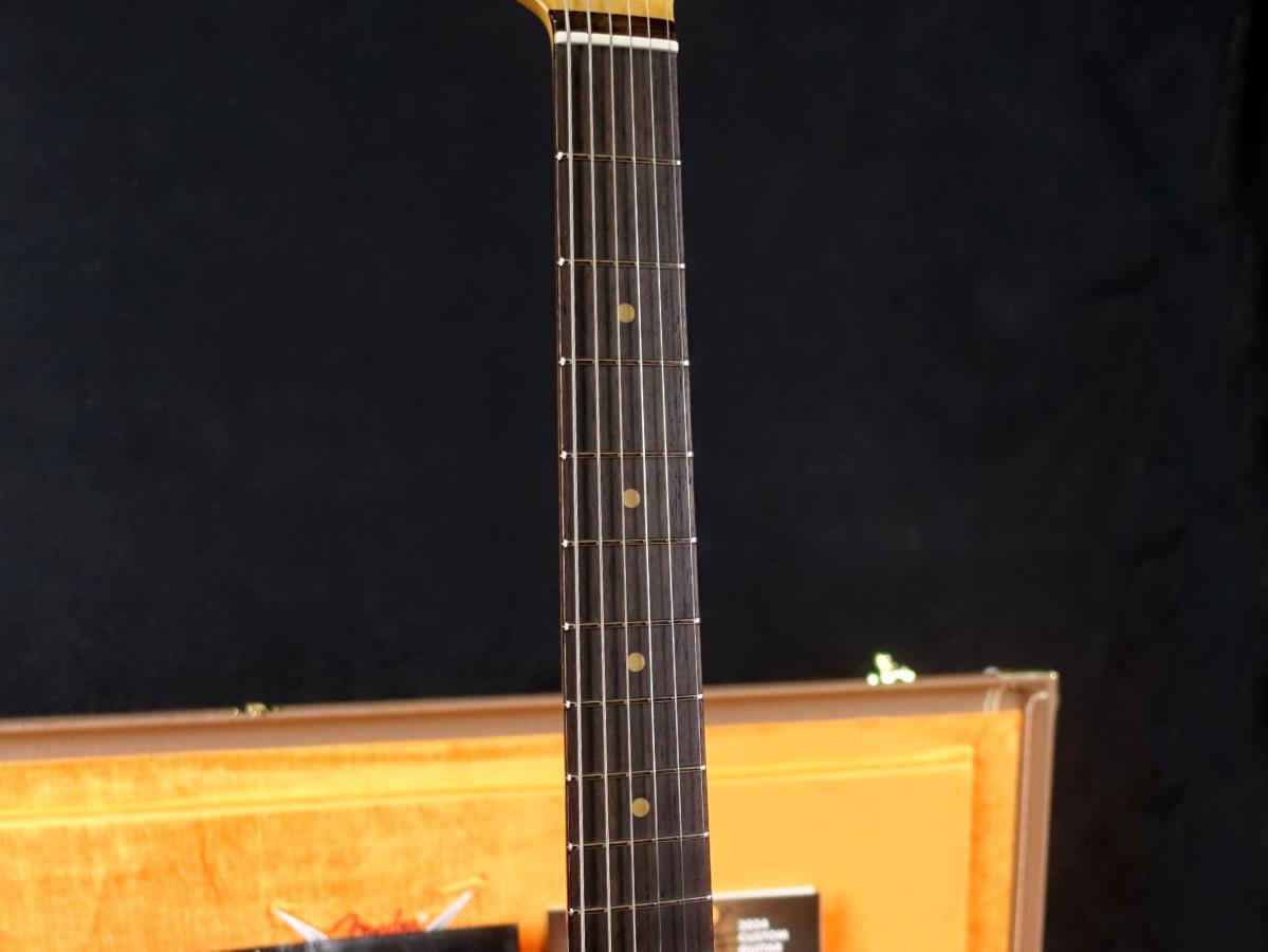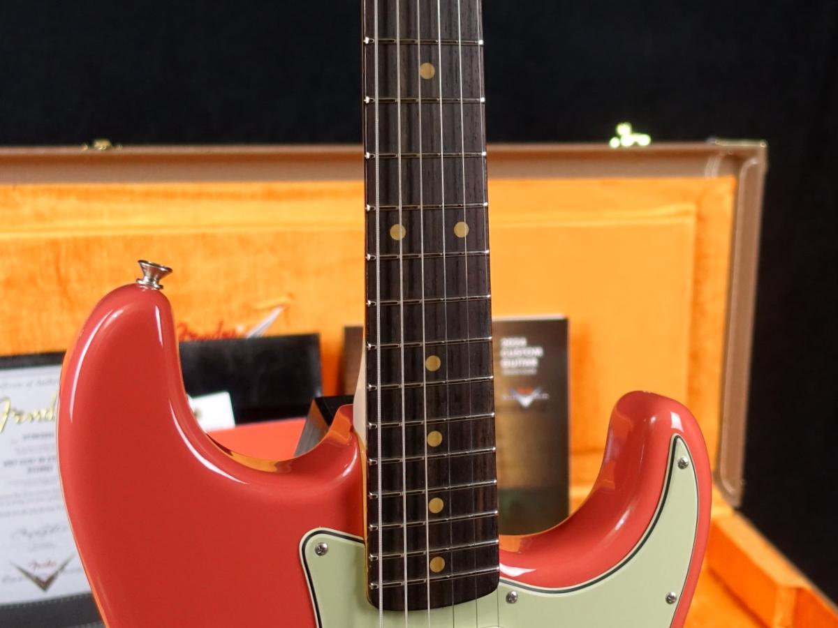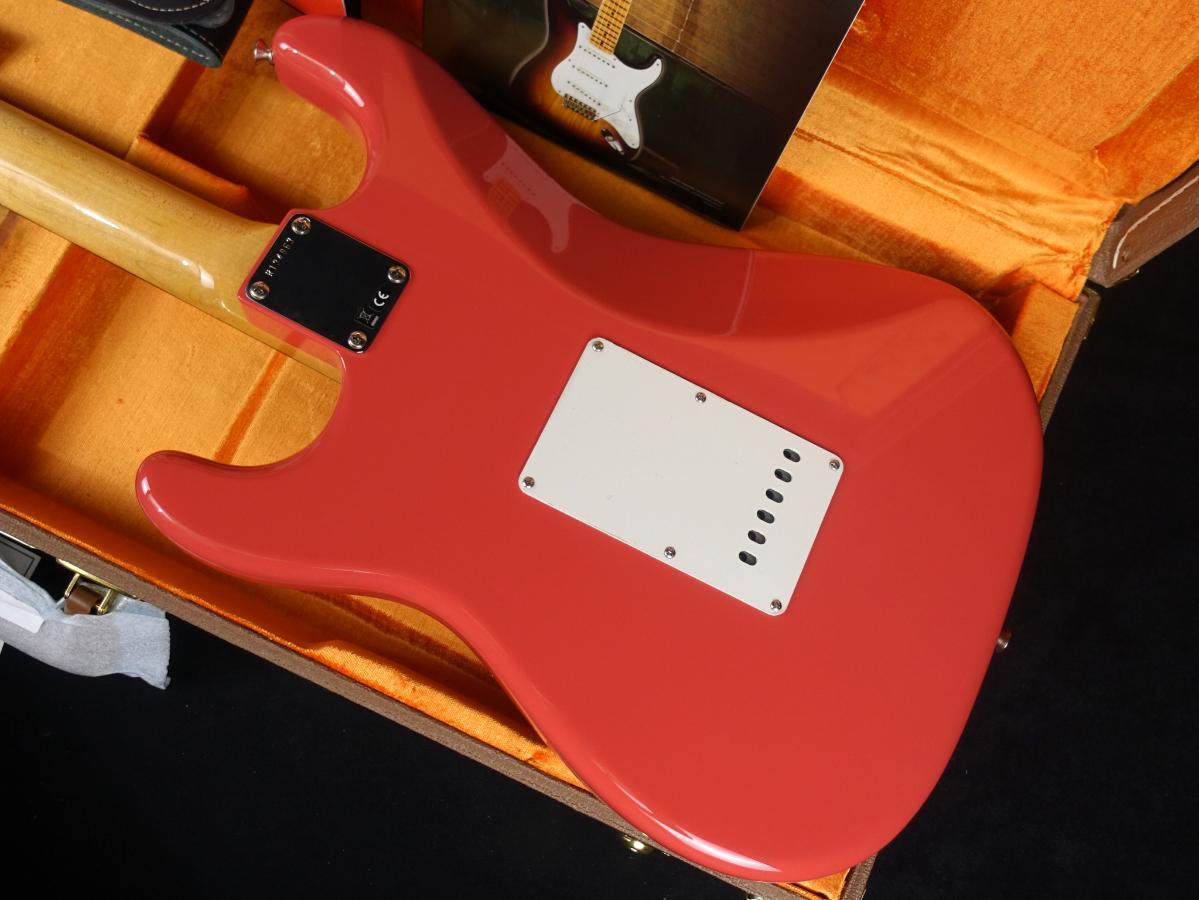 従来のワンピースメイプルネックからローズウッド指板へと変更を遂げた1959年初期のスペックに焦点を当てた“Vintage Custom 1959 Stratocaster NOS Fiesta Red”です。