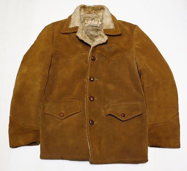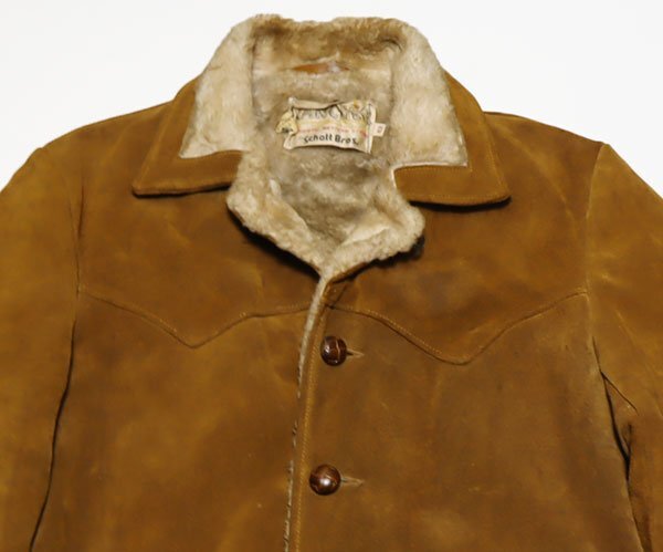 80'S頃のアメリカ製(表記はございませんが)SCHOTのスエードレザージャケットの茶系でアクリルボア裏地です。