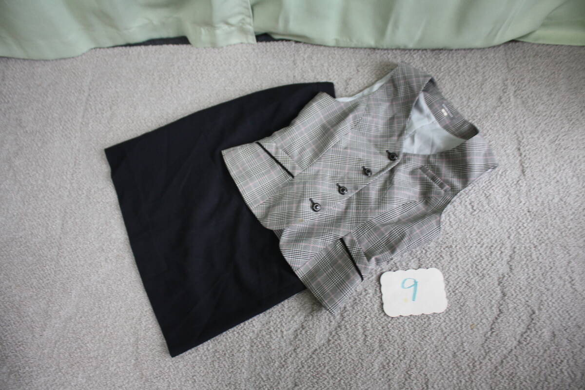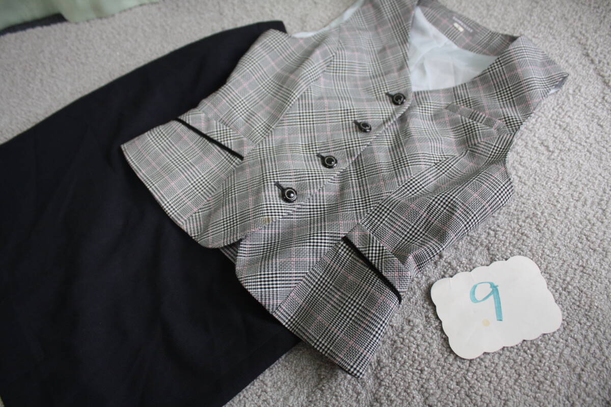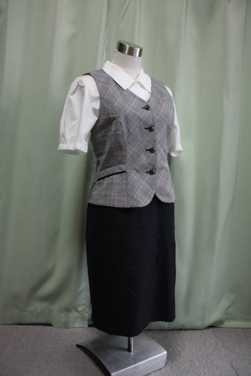 OL制服・事務服IST(SERVO)グレーチェックベスト・紺スカートセット 9号です。