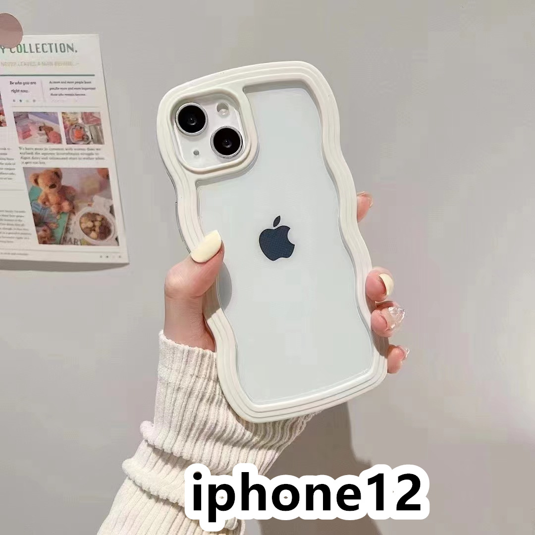 iphone12ケース カーバー TPU 可愛い 波型 お洒落 軽量 ケース 耐衝撃高品質ホワイト