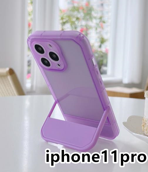 iphone11proケース カーバー スタンド付き 半透明 お洒落 韓国 軽量 ケース 耐衝撃 高品質 紫