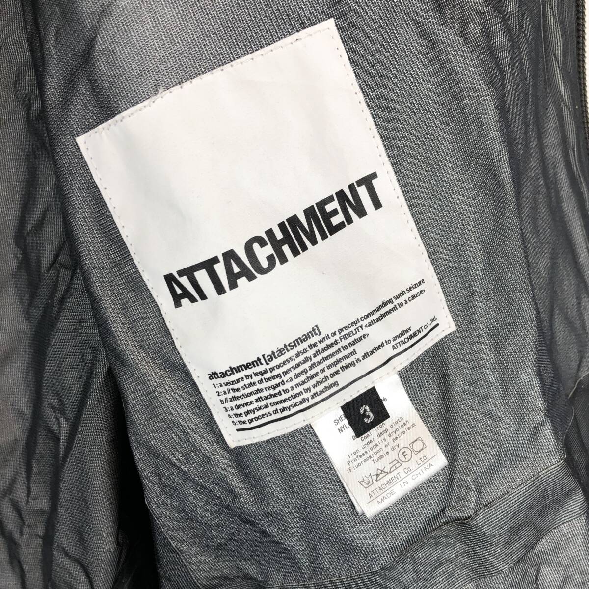 アタッチメント(ATTACHMENT) ナイロン防水パーカー 3サイズ ブラック グレーの出品です。