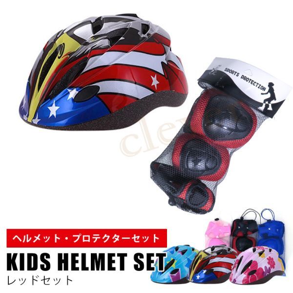 ヘルメット レッドセット 自転車 子供用 キッズ用ヘルメット&プロテクターセット 軽量 ジュニア CEマーク ダイヤル式 サイズ調整機能付