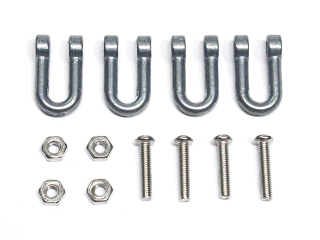 U字型フックと軸(ネジ式)とナット、それぞれ4個(1輌分)をセット。