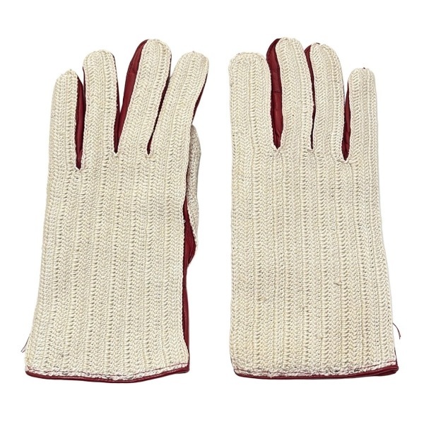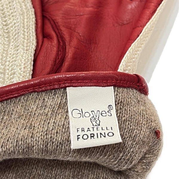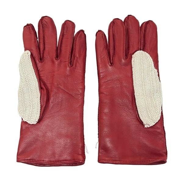グローブス Gloves - レザー アイボリー×レッド レディース 手袋