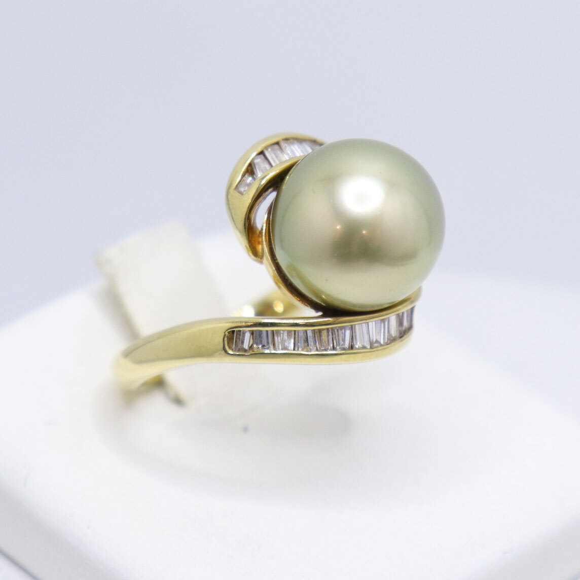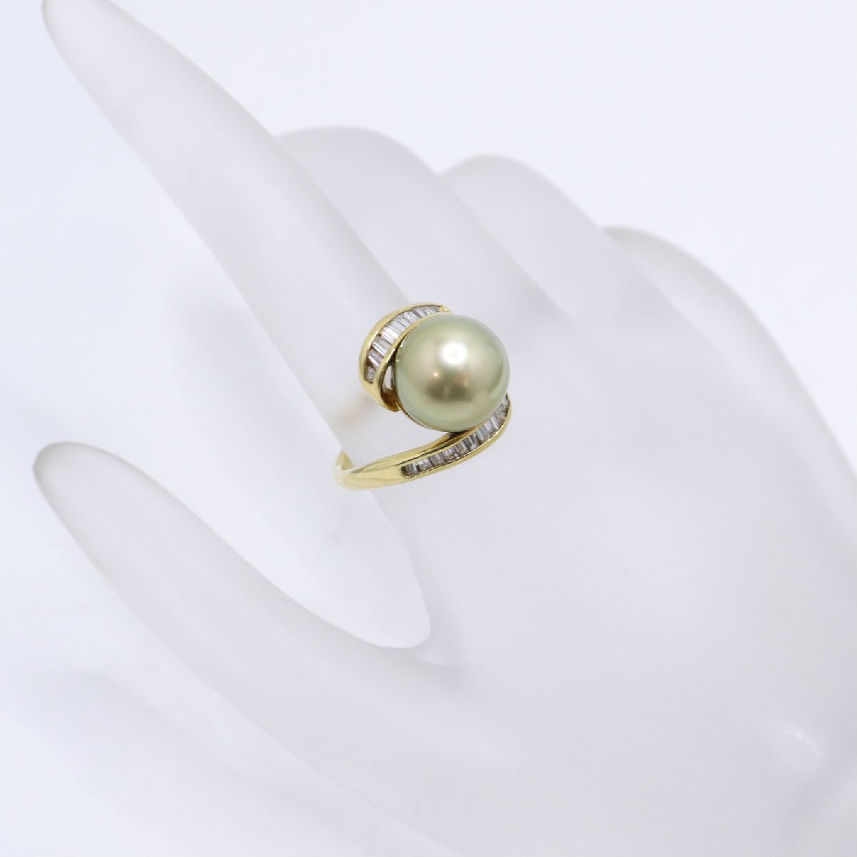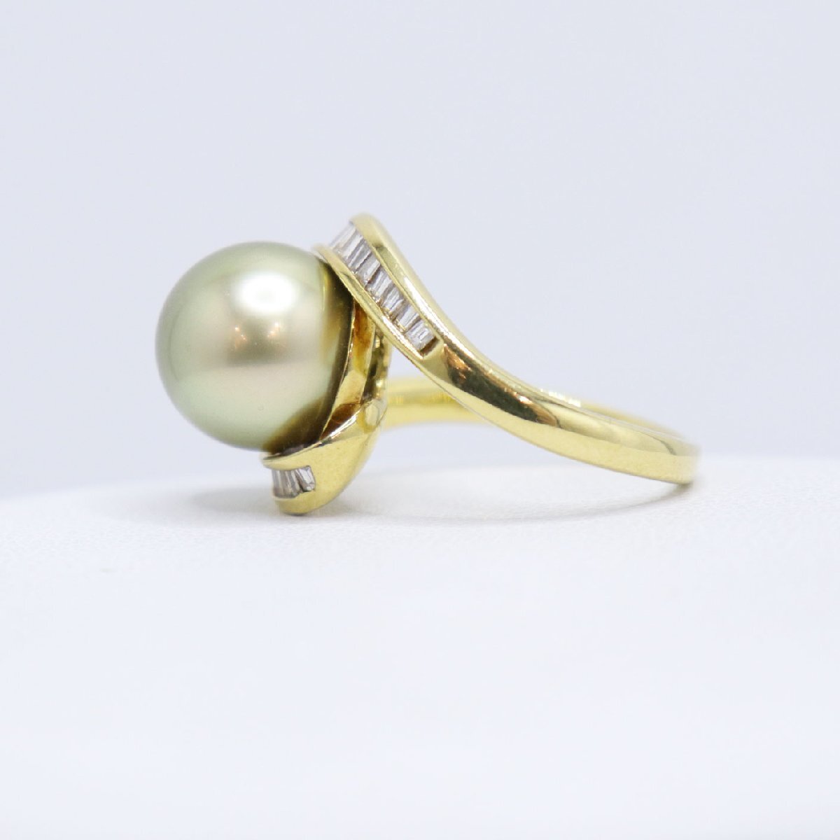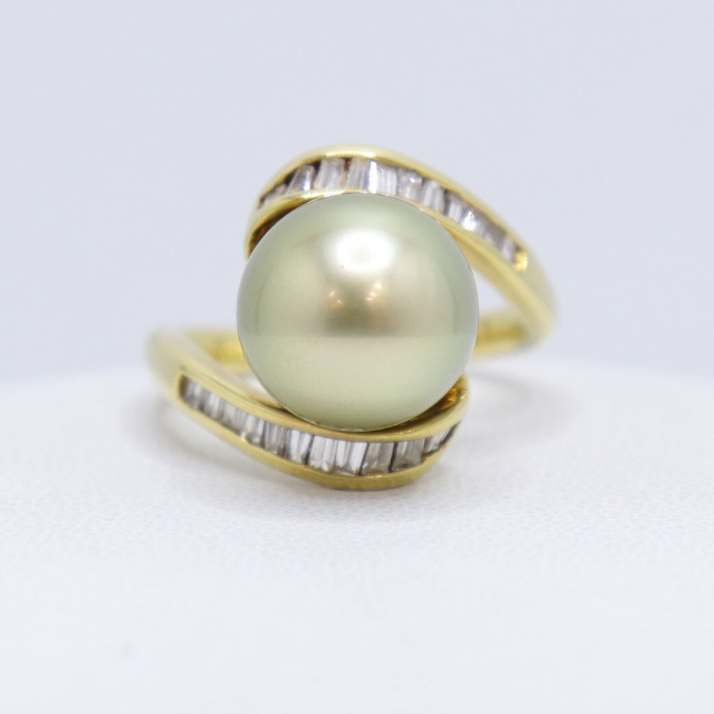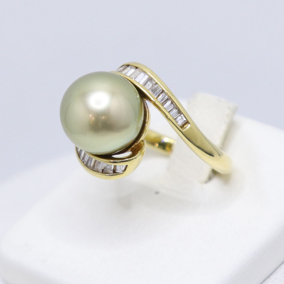 K18 ダイヤモンド付 パール リング 南洋真珠 約11.4mm ダイヤ 0.49ct 重量約7.6g 日本サイズ#12号 pearl 中古 美品 送料無料!!