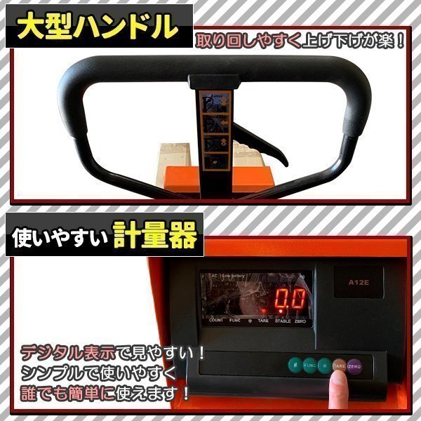パレットスケール 2000kg 2t 計量器付きハンドパレット ハンドリフト ハンドパレット 充電式スケール デジパレ 計量器 計り スケール