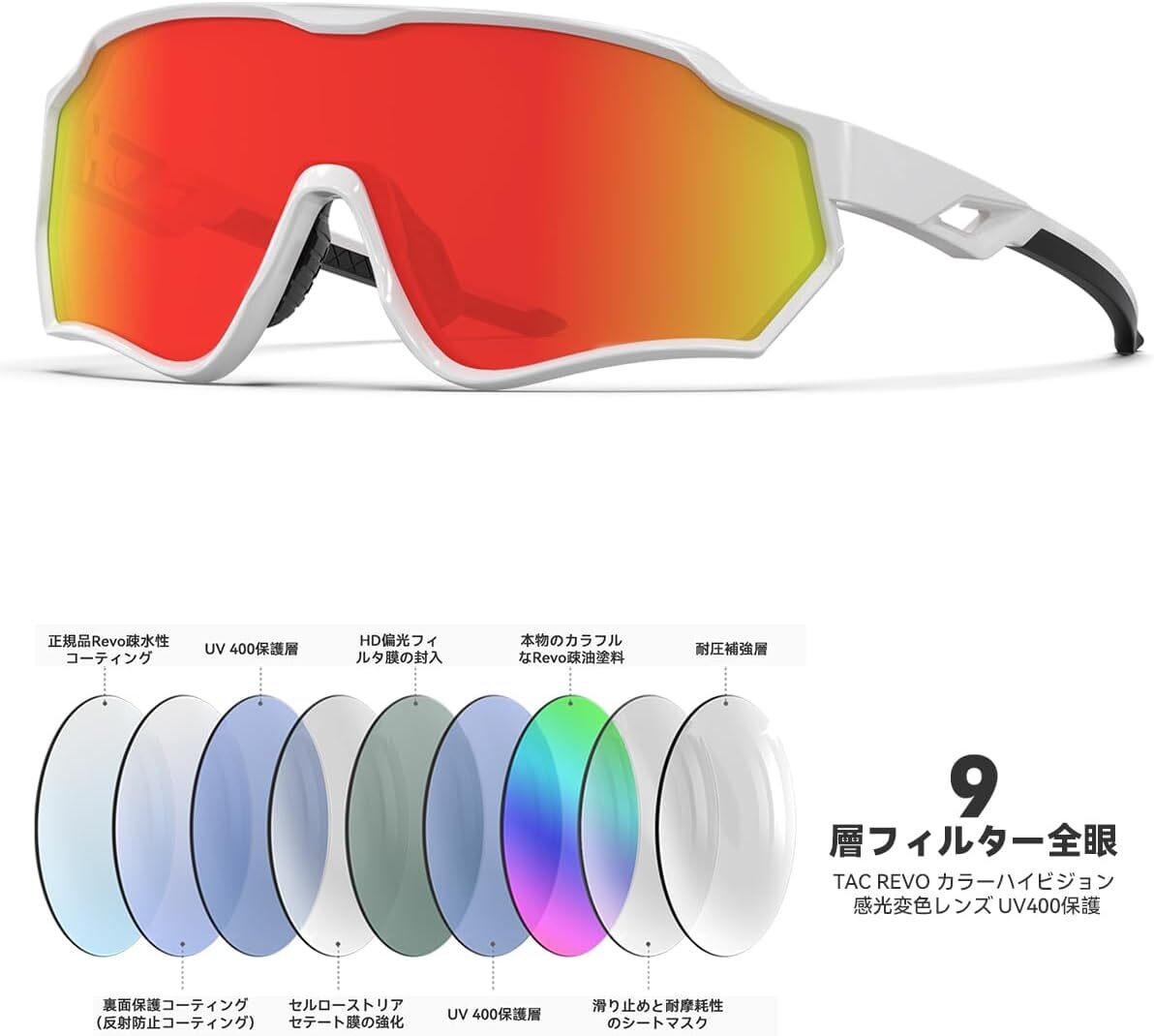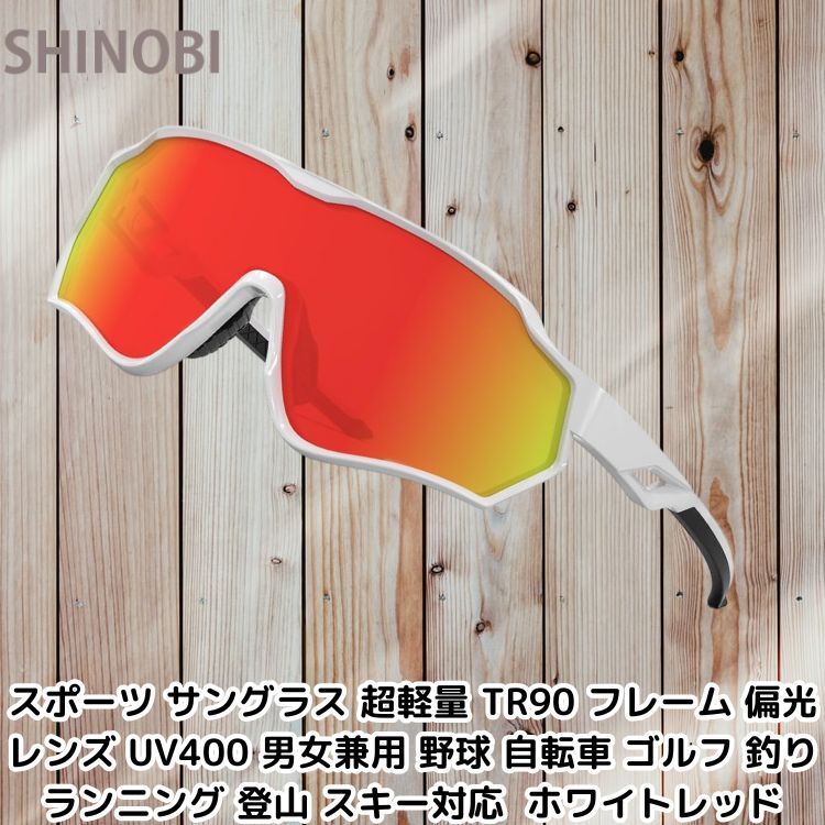 スポーツ サングラス 超軽量 TR90 フレーム 偏光 レンズ UV400 男女兼用 自転車 ゴルフ 釣り ランニング 登山 スキー ホワイトレッド