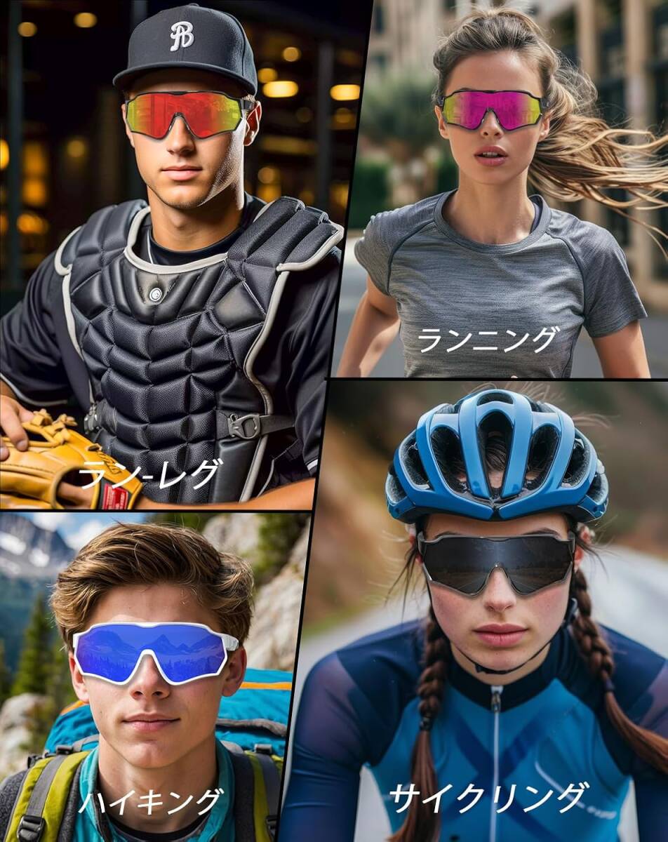 ランニング、野球、運転、釣り、登山、サイクリング、オートバイ、レース、スキー、トレッキングなど、様々なアウトドアアクティビティに最適です。