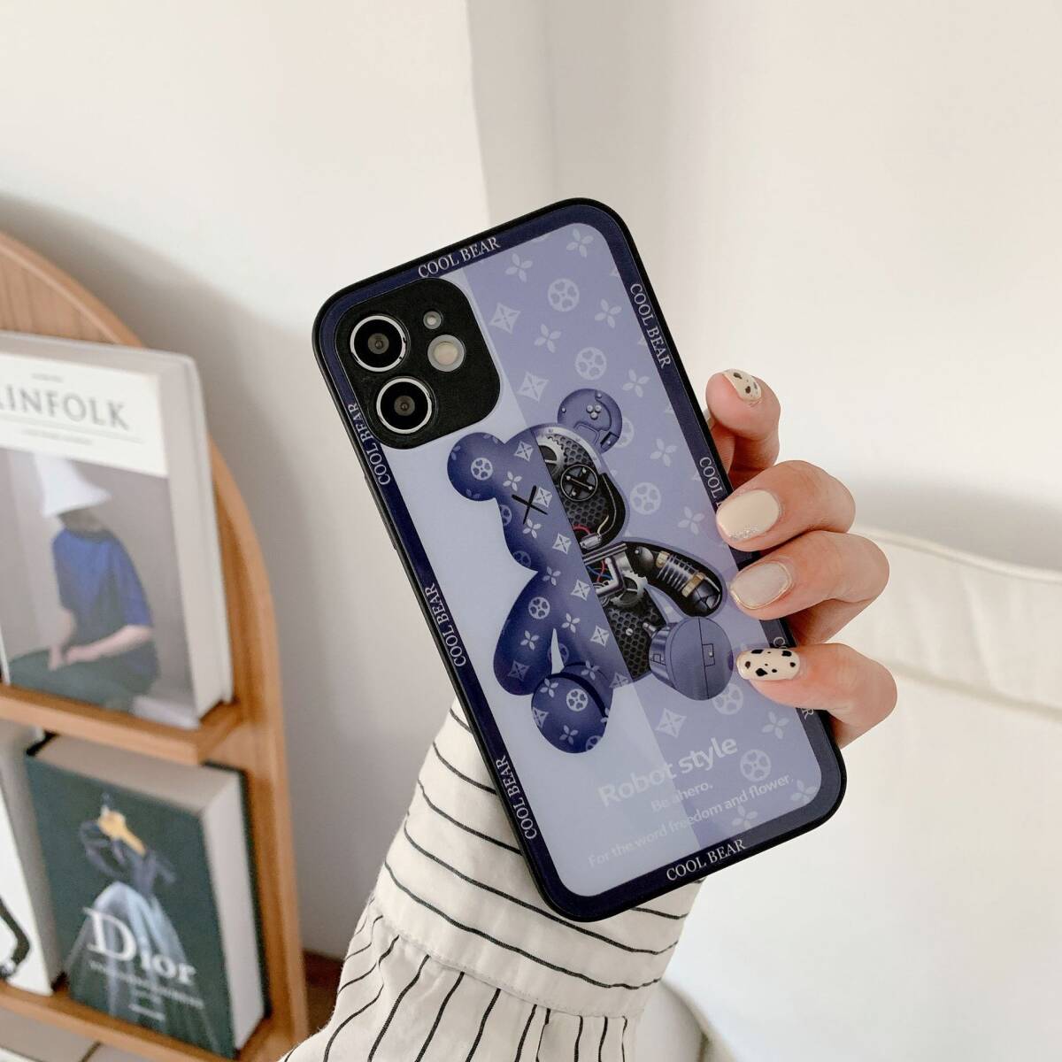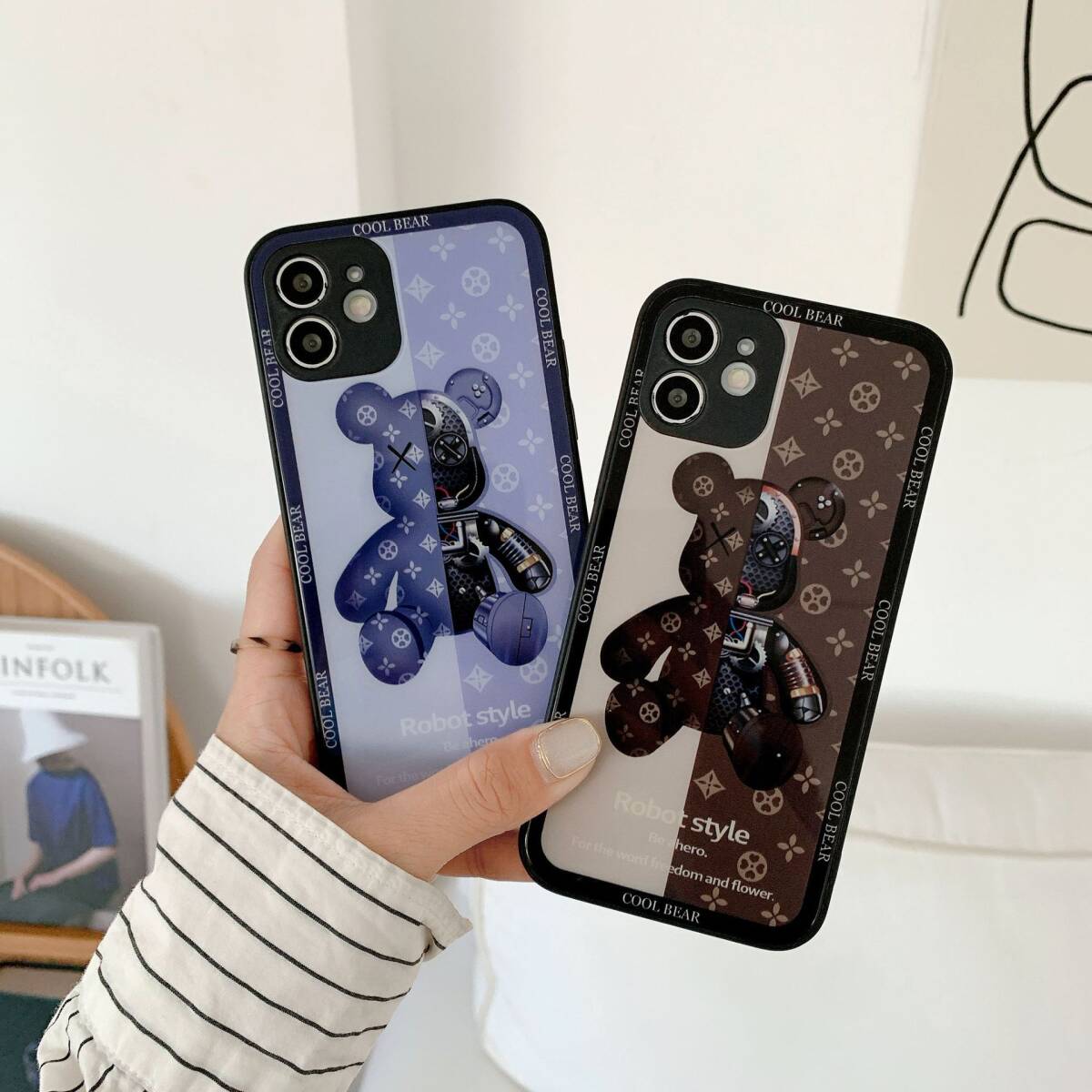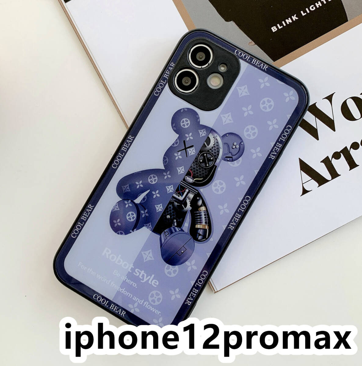 iphone12promaxケース カーバー TPU 可愛い 熊 ガラス お洒落 軽量 ケース 耐衝撃高品質ブルー