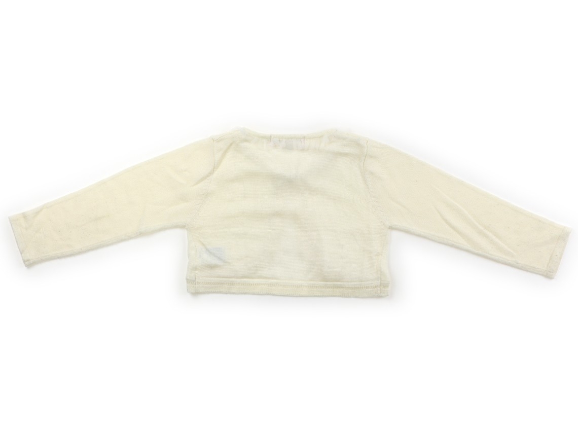 薄手のニット生地。ボタン留め。全体に細かい毛玉が複数あります。左袖に小さく茶色いシミがあります。使用感はありますが、お手入れ次第でまだまだお使いいただけます。