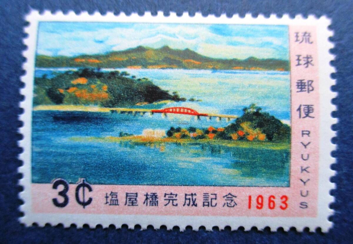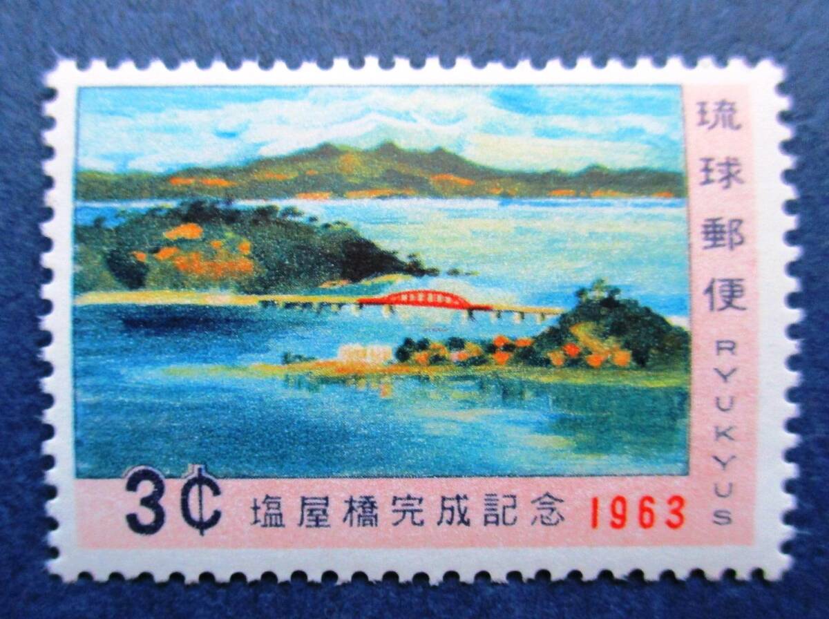 沖縄切手・琉球切手 塩屋橋完成記念 3¢切手 AA249 微かにシミがあります。画像参照してください。