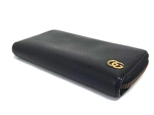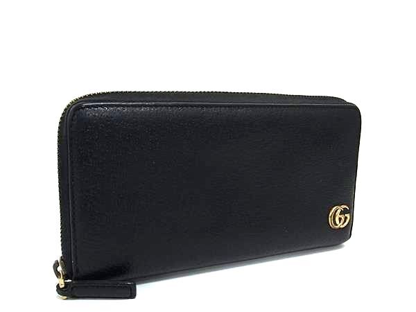 1円 GUCCI グッチ 2184 GGマーモント レザー ラウンドファスナー 長財布 ウォレット 札入れ 小銭入れ カード入れ ブラック系 FN8007
