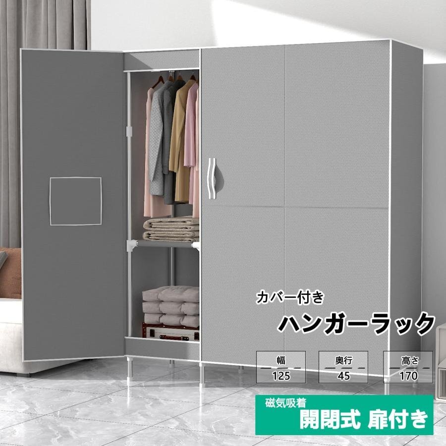 ワードローブ クローゼット マグネット開閉式 カバー付き 磁気吸着 扉付き 大容量 衣類収納ラック 通気性 不織布 簡単組立式 shw106.bn