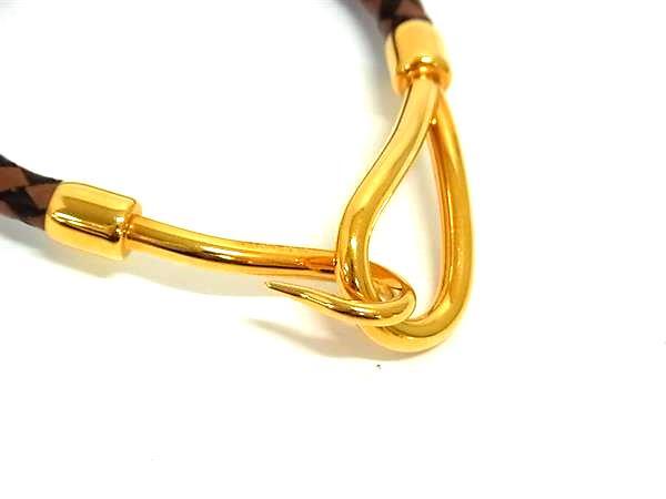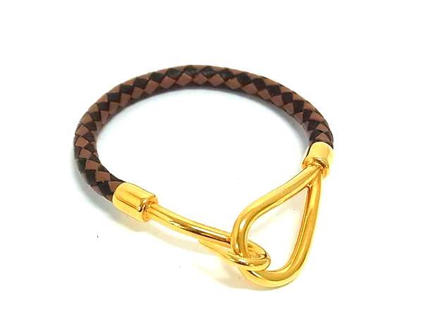 1円 ■極美品■ HERMES エルメス ジャンボ レザー ゴールド金具 ブレスレット アクセサリー ブラック系×ブラウン系×ゴールド系 FP8321