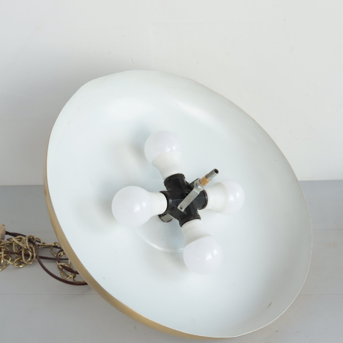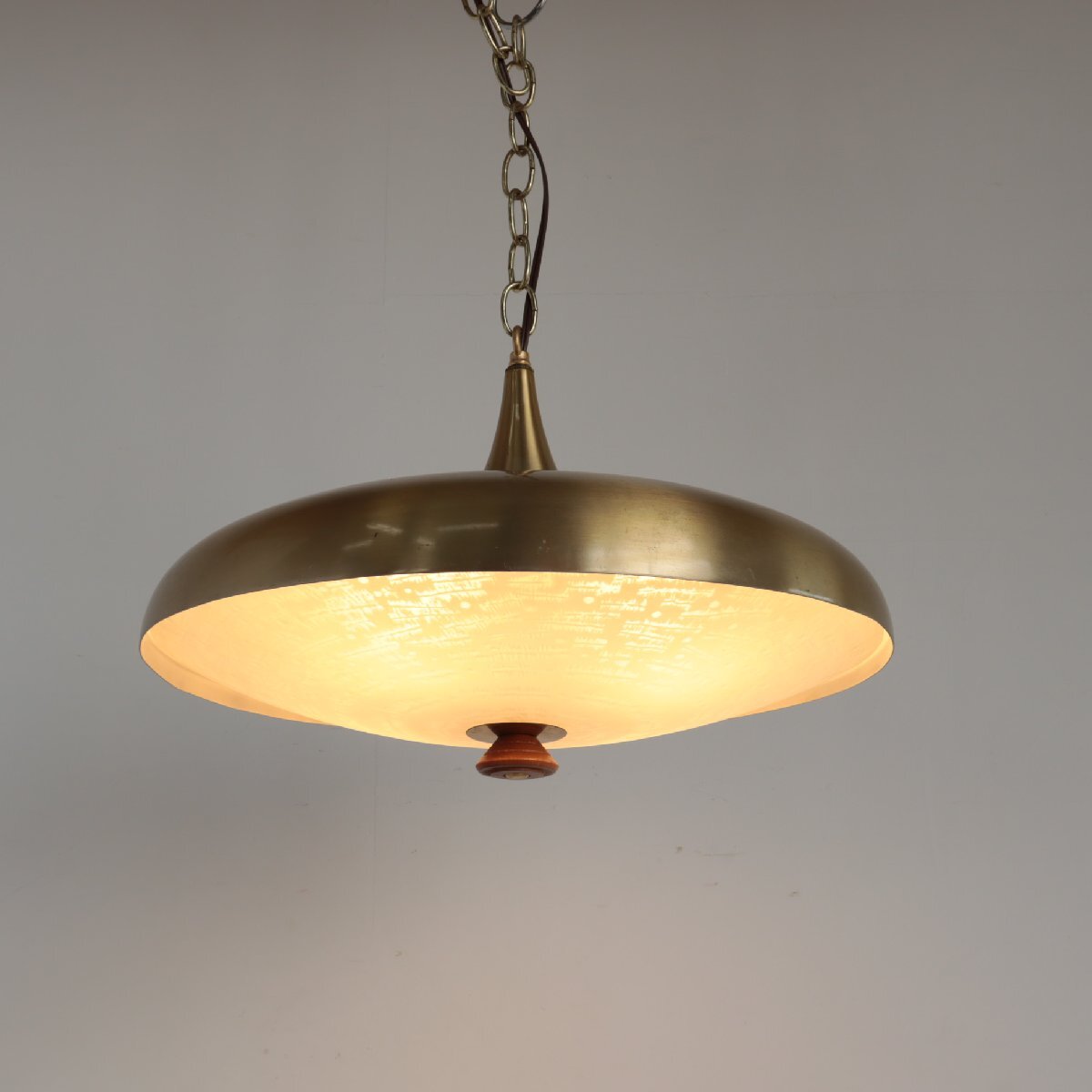 | 商品説明 explanation | 1950年代、当時アメリカで流行していた、UFO型のペンダントランプです。 近未来的なメタルシェードには電球が4灯付いており、優しい光が空間を灯してくれます。 ミッドセンチュリー期らしさ満載のデザインで、ディスプレイとして絵になります。 海外でも人気が高く、今後入荷が難しくなってくると思われます。 ご自宅や店舗にいかがでしょうか。 |