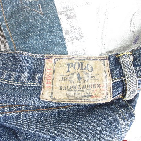 ポロ バイ ラルフローレン Polo by Ralph Lauren デニム ジーンズ パンツ ロング丈 ワイド 綿 インディゴ ブルー 34