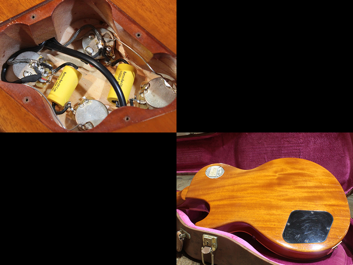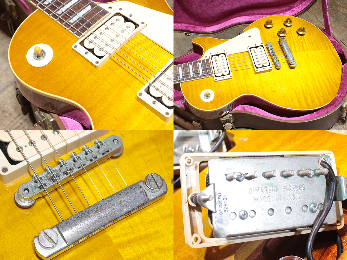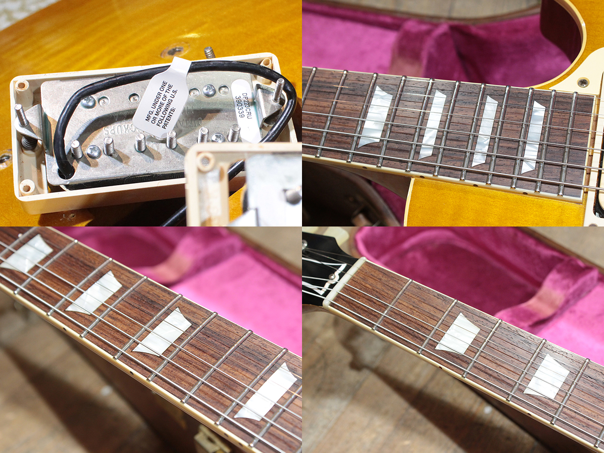 フレットが交換され、ナットも交換されております。ピックアップが両方ともディマジオ製PAF 36th Anniversaryに交換されております。PAF系のサウンドをベースにしながら単なるレプリカには収まらない味わい深さがあり、激しくドライブしたサウンドでも受け止める58レスポールのイメージと絶妙にマッチしております。コンデンサーはRetrovibe Oil Capacitor 0.022uF 400VDCに交換され、ヴィンテージ感溢れるフィルタリングを魅力とします。