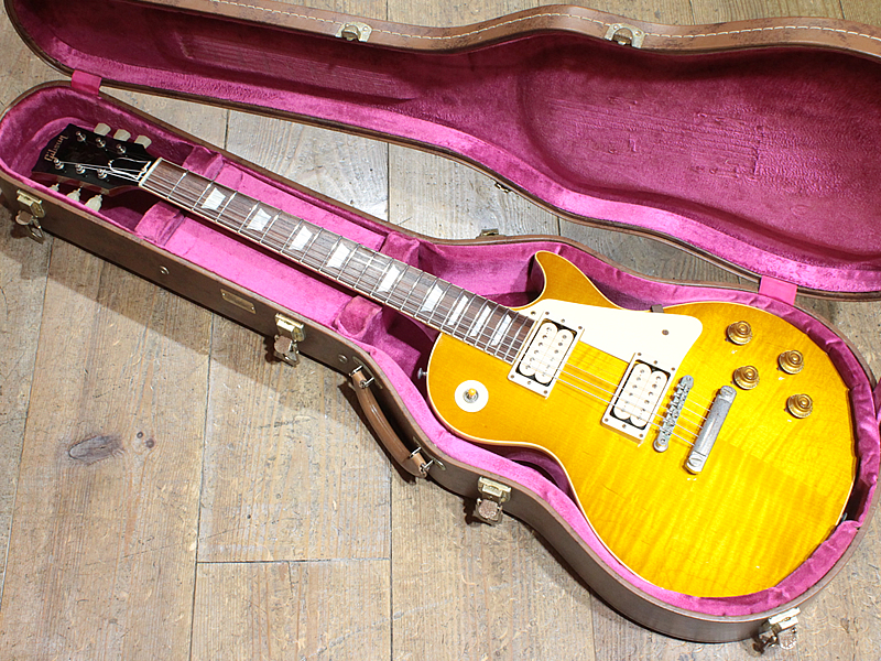 HRM(ハードロックメイプル)をトップに添え、かつフィギュアドな個体は貴重です。演奏面においてアップグレードされた箇所があるものの、オリジナルと離れているために、ややお買い求め易いプライスとなっております。飾るというよりは、楽器としてガンガン演奏してゆく良いレスポールをお探しの方に強くおすすめできます。