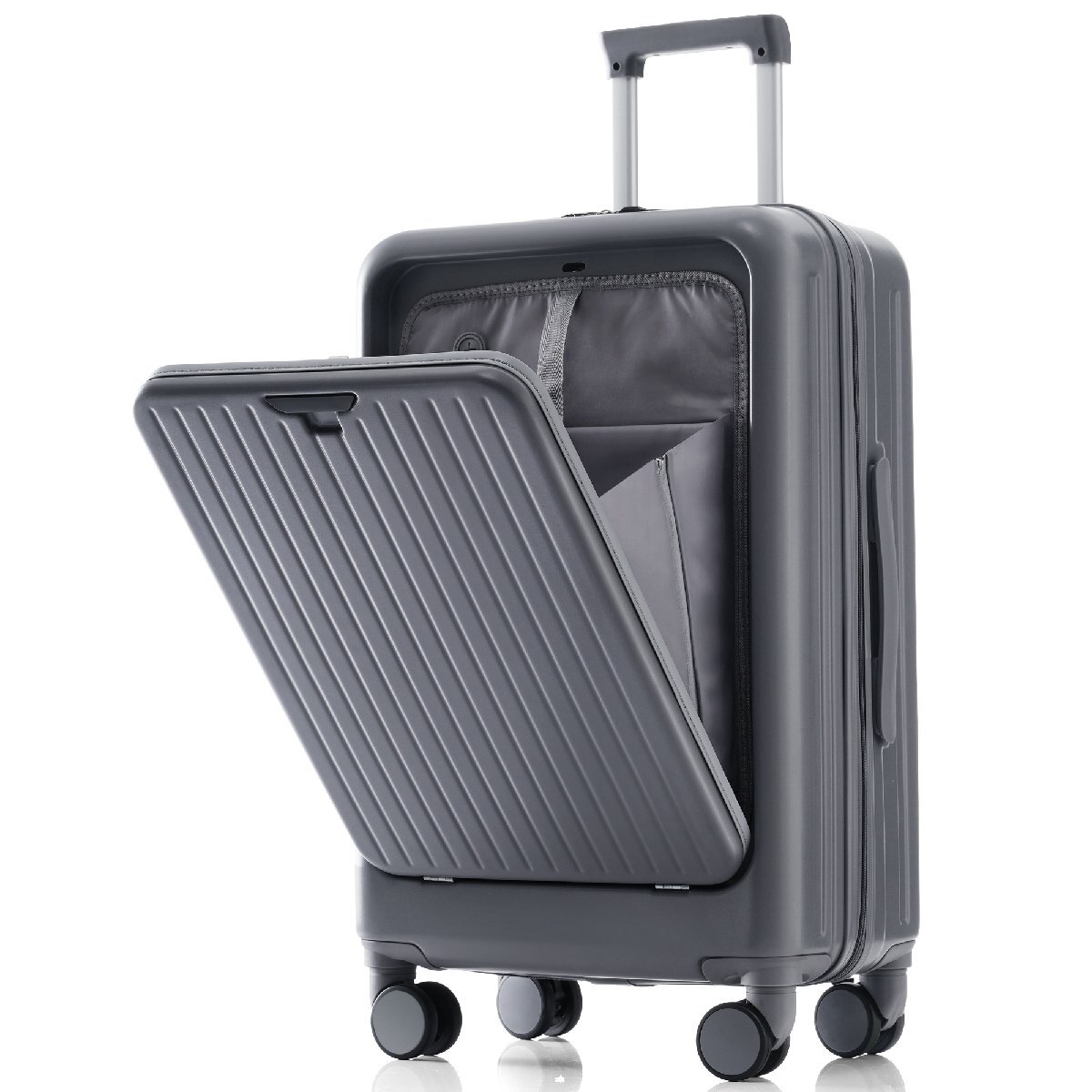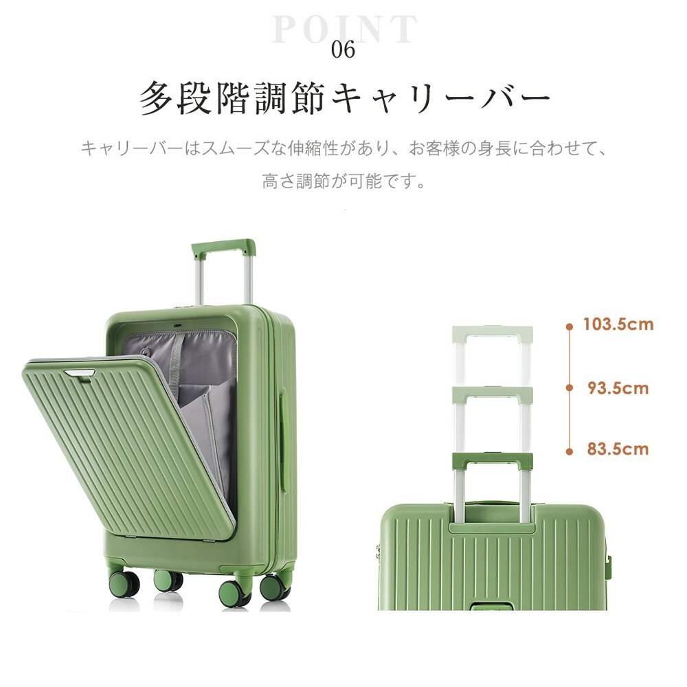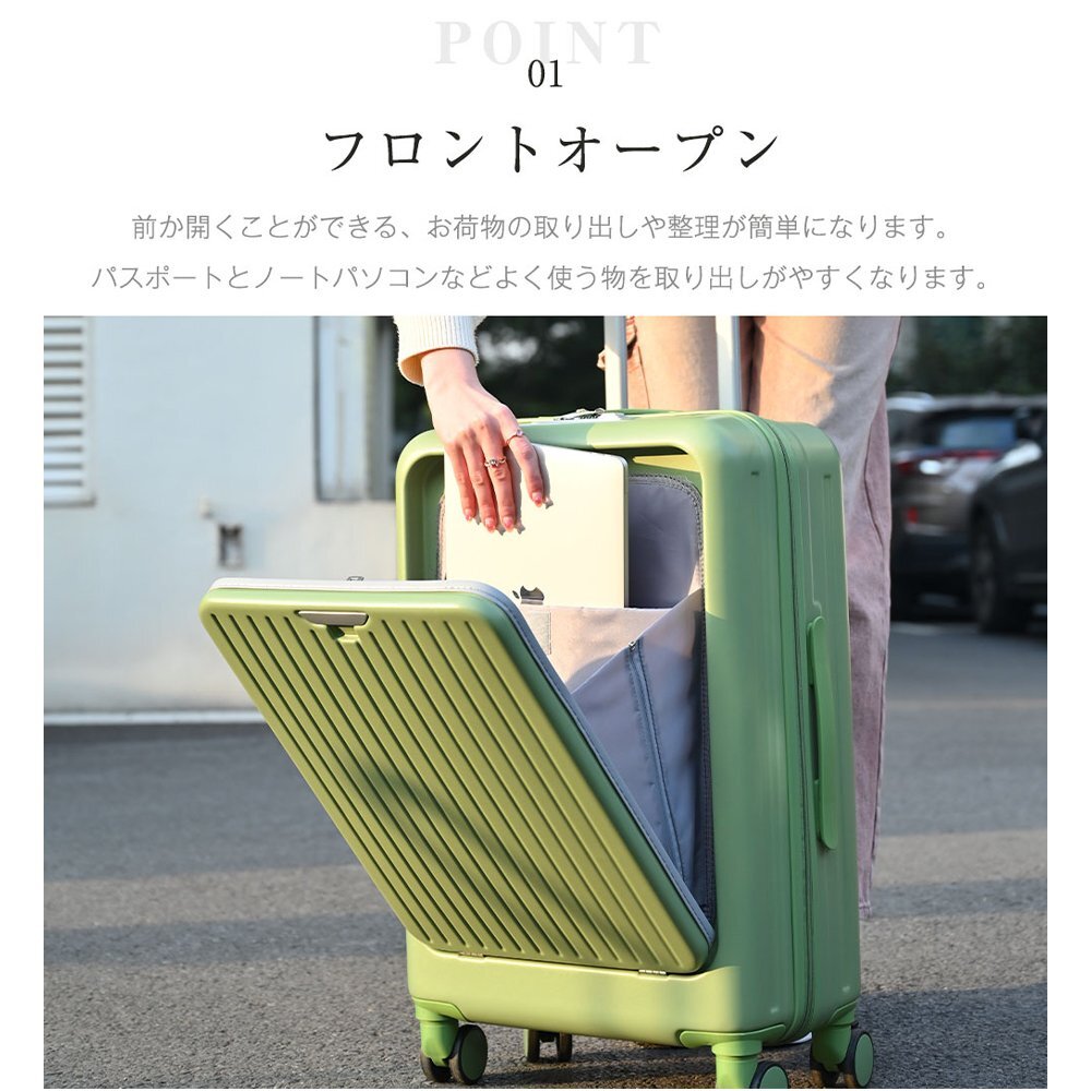 スーツケース Mサイズ フロントオープン ストッパー付き USBポート付き カップホルダー付き キャリーバッグ キャリーケース QD26