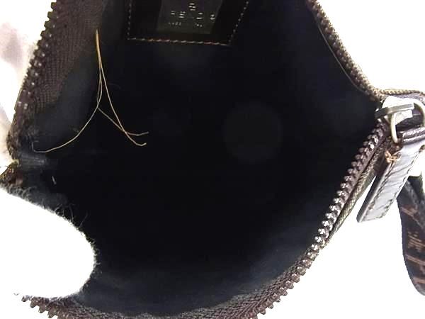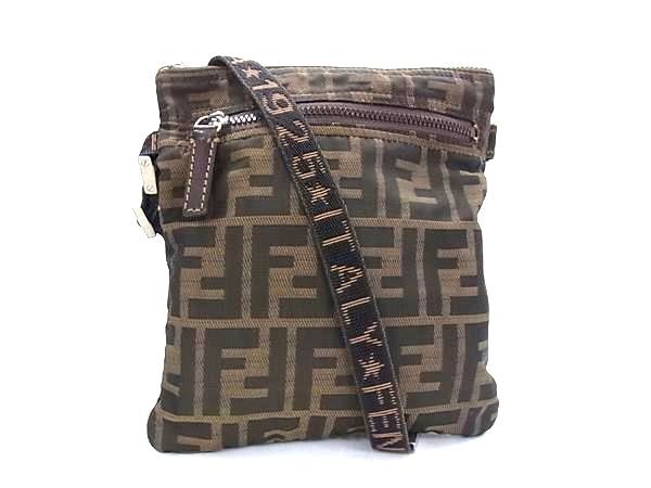 1円 FENDI フェンディ ズッカ柄 ナイロンキャンバス×レザー ショルダーバッグ ポシェット 斜め掛けかばん ブラウン系 FP5254