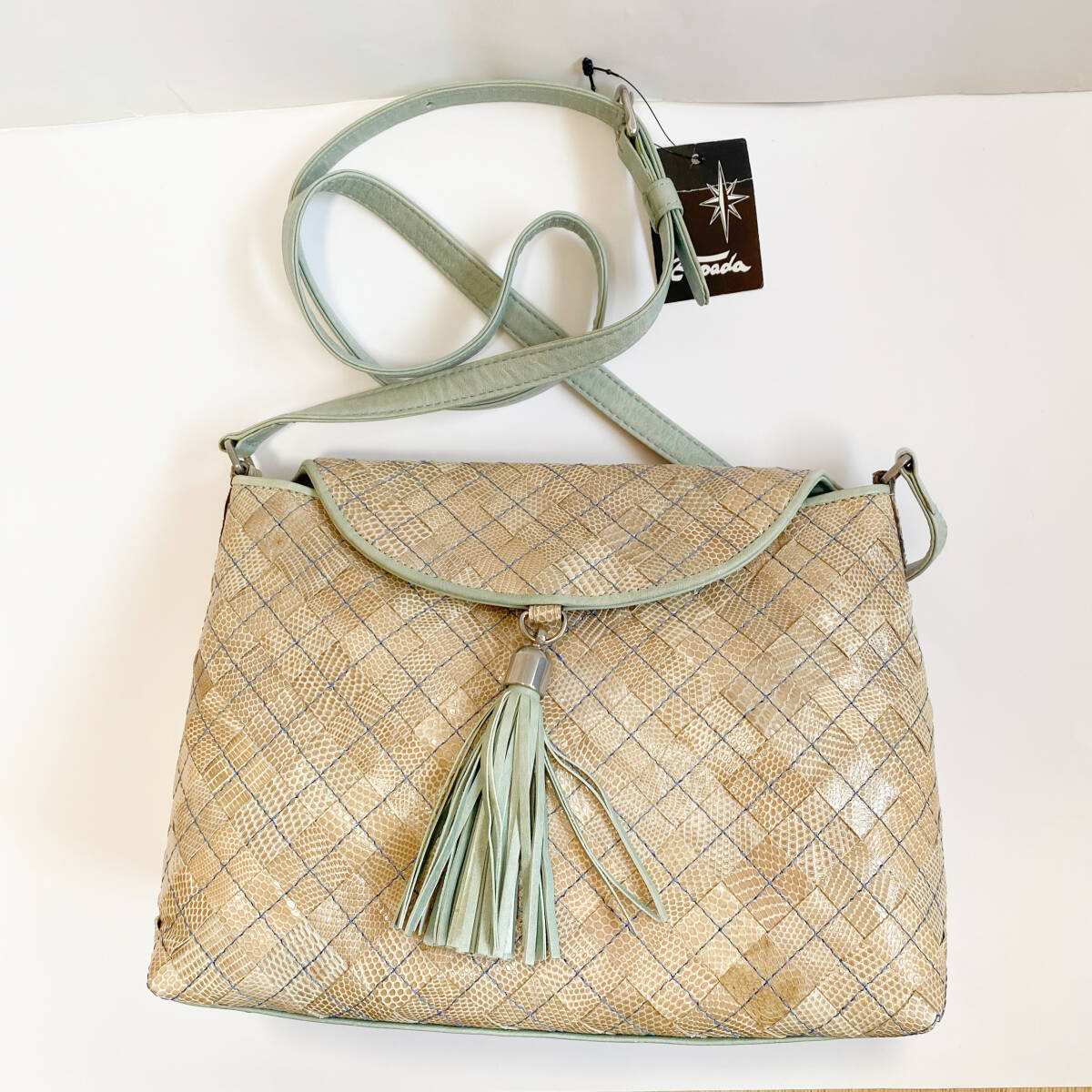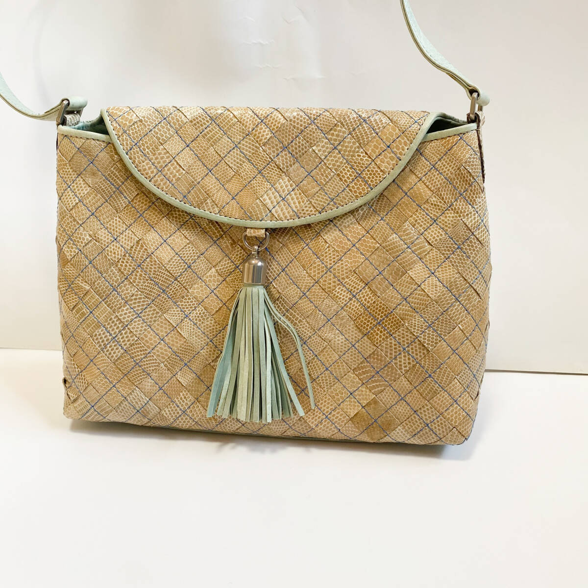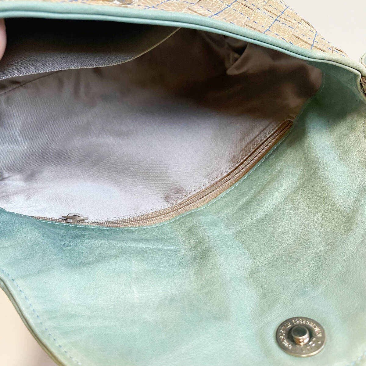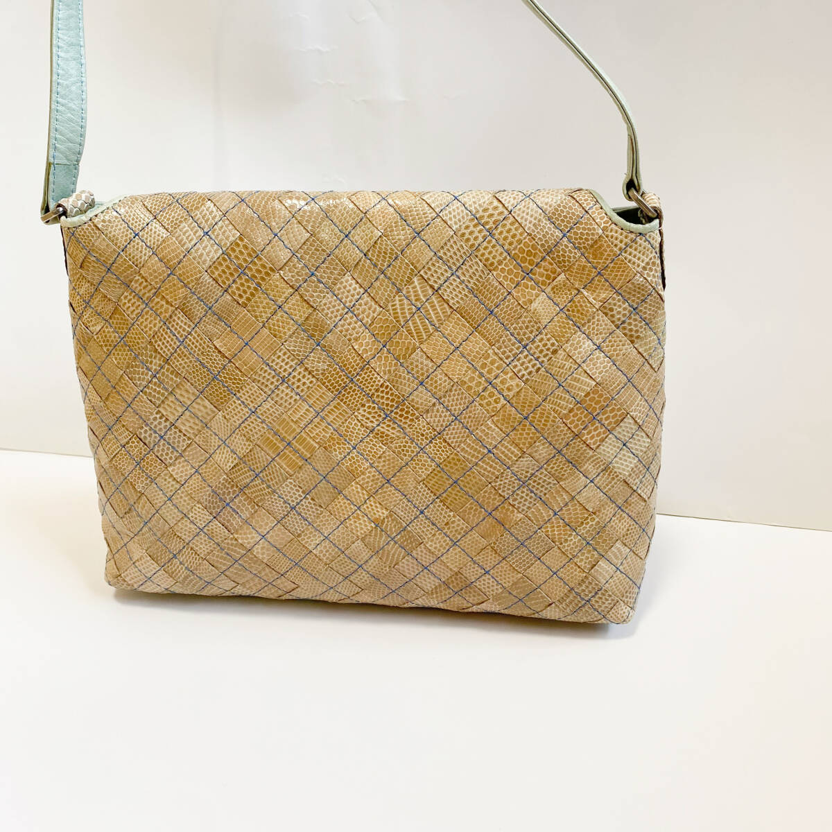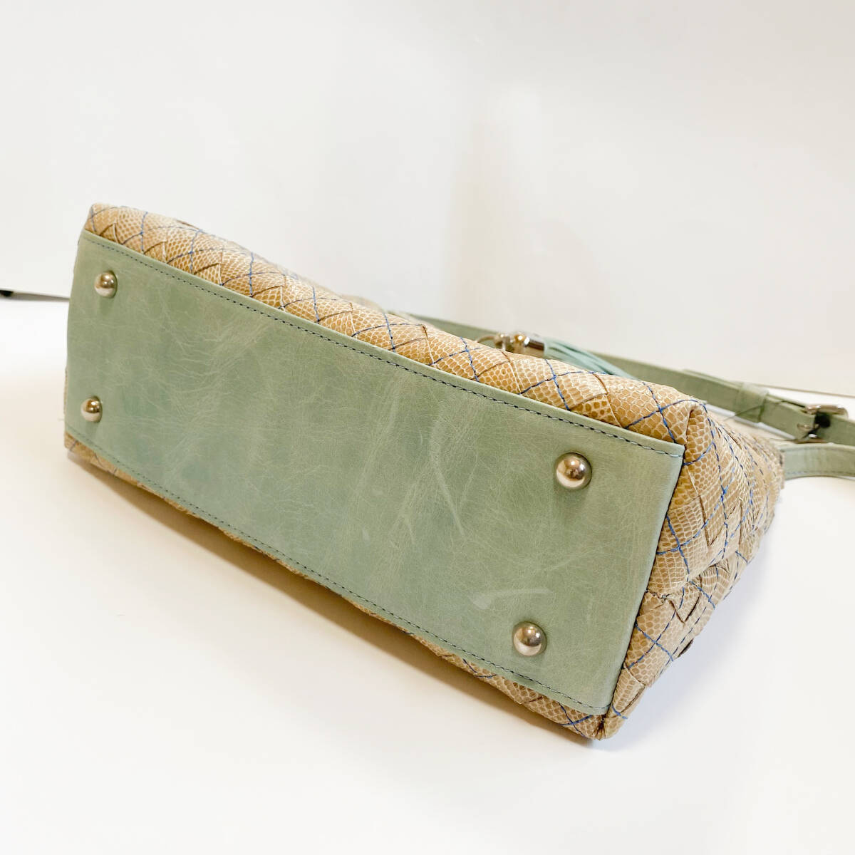 【希少】エキゾチックレザー ショルダーバッグ ベージュ × グリーン 旅行や日常づかいに♪ 【18-CH-12】