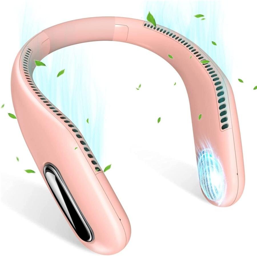 首掛け扇風機 2025 扇風機 ネッククーラー 携帯扇風機 羽なし USB充電式 首掛けファン 熱中症 マスク蒸れ ひんやり音 色:ピンク