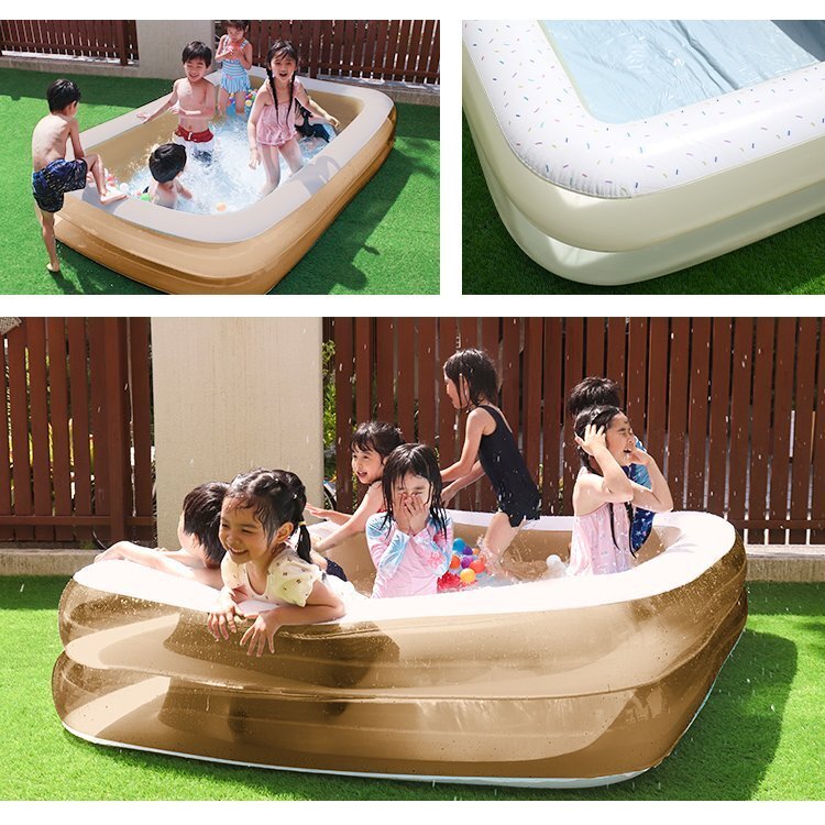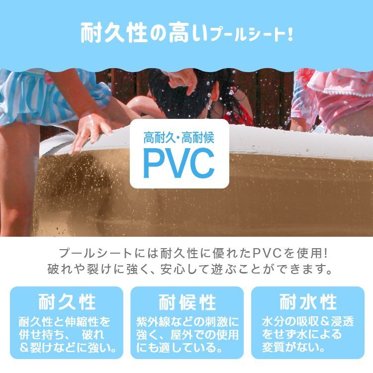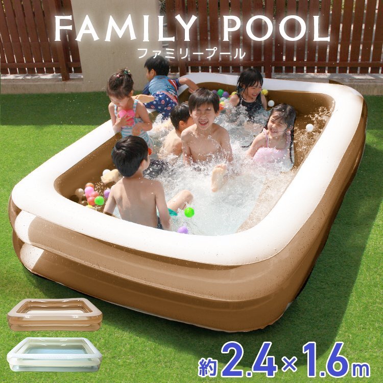 \ 暑い夏は、プールで涼しさを味わいませんか♪ / 小さなプールでは物足りない・・・ そんな方にもご満足いただける、約2.4メートルのジャンボファミリープールです。 大人が脚を伸ばしても悠々くつろげるゆったり感! 子どもなら泳げちゃうくらい広々としています。 2気室仕様なので、大人が寄りかかっても倒れず頑丈です!! 【商品コード】GAC002GG 【商品詳細】 カラー:ミルクグレージュ サイズ(約):幅240×奥行き160×高さ45cm 重量(約):5.65kg 素材:PVC(ポリ塩化ビニール) 気室:2気室 対象年齢:4歳以上 【注意事項】 ※エアポンプは付属していません。 ※本商品はPVCを使用しております。材質の特性上、接触・摩擦による他製品への色移り、 または本商品への色移りすることがありますのでご注意ください。 ※必ず保護者同伴のもと、本商品をご利用下さい。 ※空気の入れ過ぎは破損の原因になります。内周部にシワが少し残るくらいが適量です。 ※空気栓は、栓と弁の二重構造になっていますが、弁は空気の急激なもれを防ぐ補助弁で、空気を完全に止めるものではありません。 必ず栓をしっかり差し込んでご使用下さい。 ※プールは安定した平らな場所でご使用下さい。傾斜のある場所、タイル・煉瓦など目地や段差のある場所でのご使用は変形・破損の原因になりますので避けて下さい。また、表面に塗装・コーティング等の処理された場所でのご使用は塗装等が変色したりプール本体に色移りすることがあります。ご注意下さい。 ※商品は、モニターによって色合いが異なって見える場合があります。 ※仕様・デザインは改良のため予告なく変更することがあります。 【もちろん新品未使用品です】 |