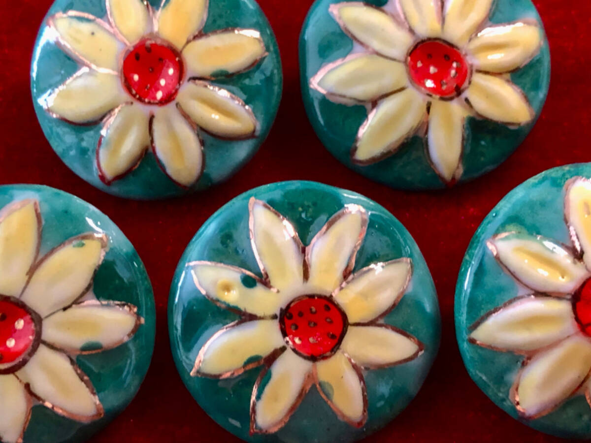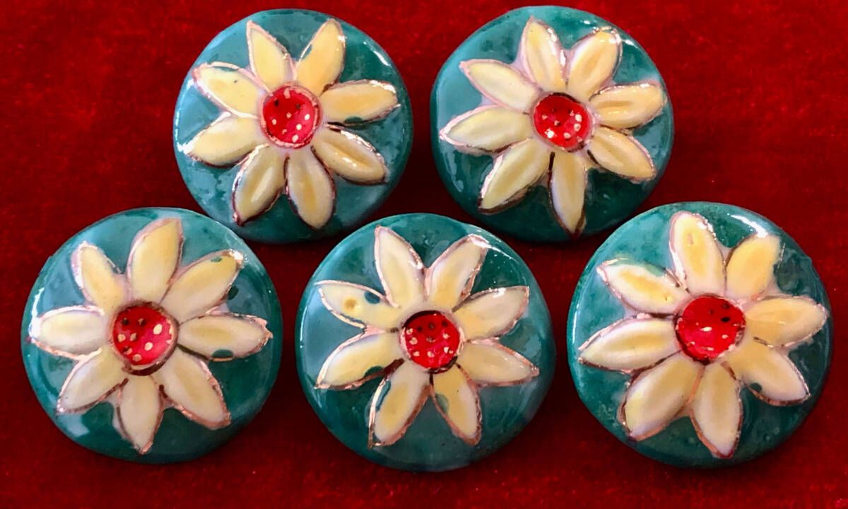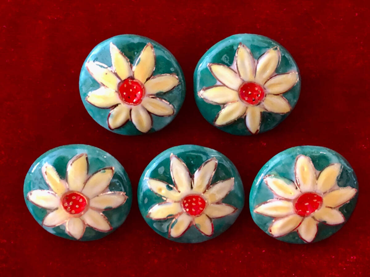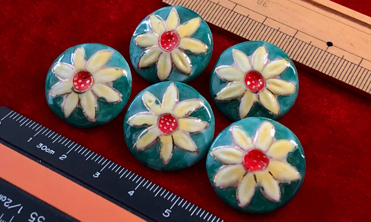 緑色釉に 彩磁金粉縁取りの菊花模様大玉実用可能なボタン