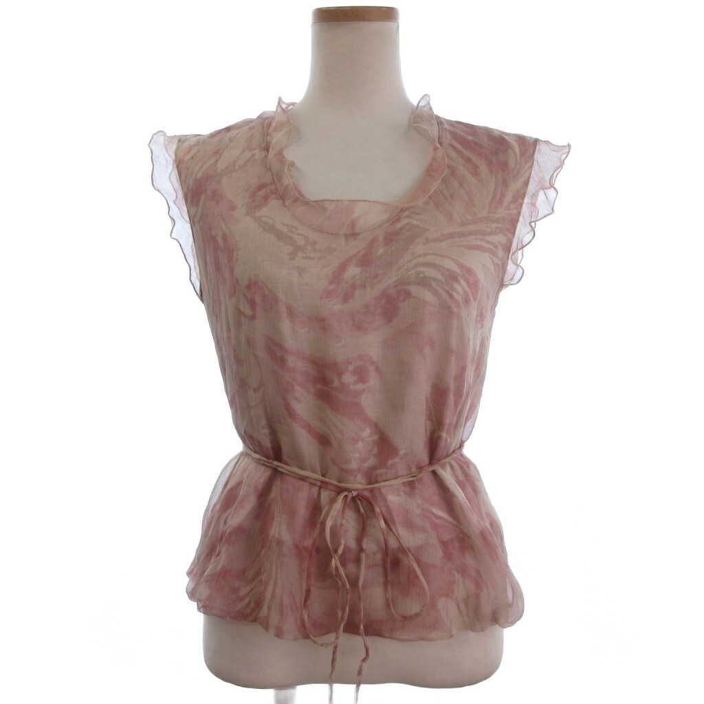 マックスマーラ MAX MARA 白タグ ノースリーブ バルーン ブラウス プルオーバー シルク フリル 総柄 ピンク系 38 M位 ■ECT レディース