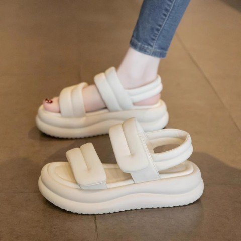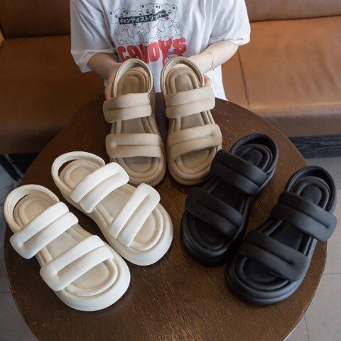 ・愛らしいぷっくりとしたベルトデザインのもこもこサンダル。
