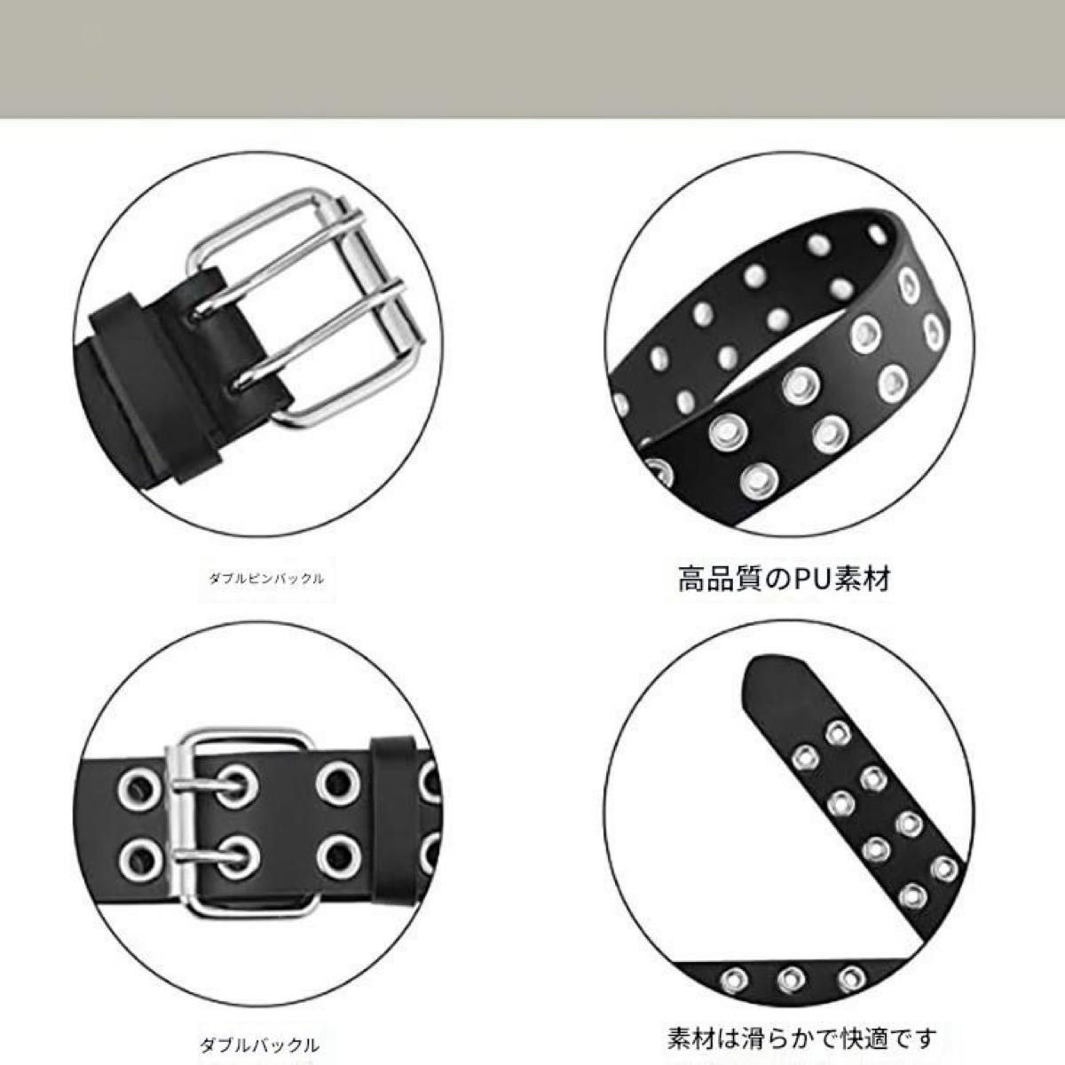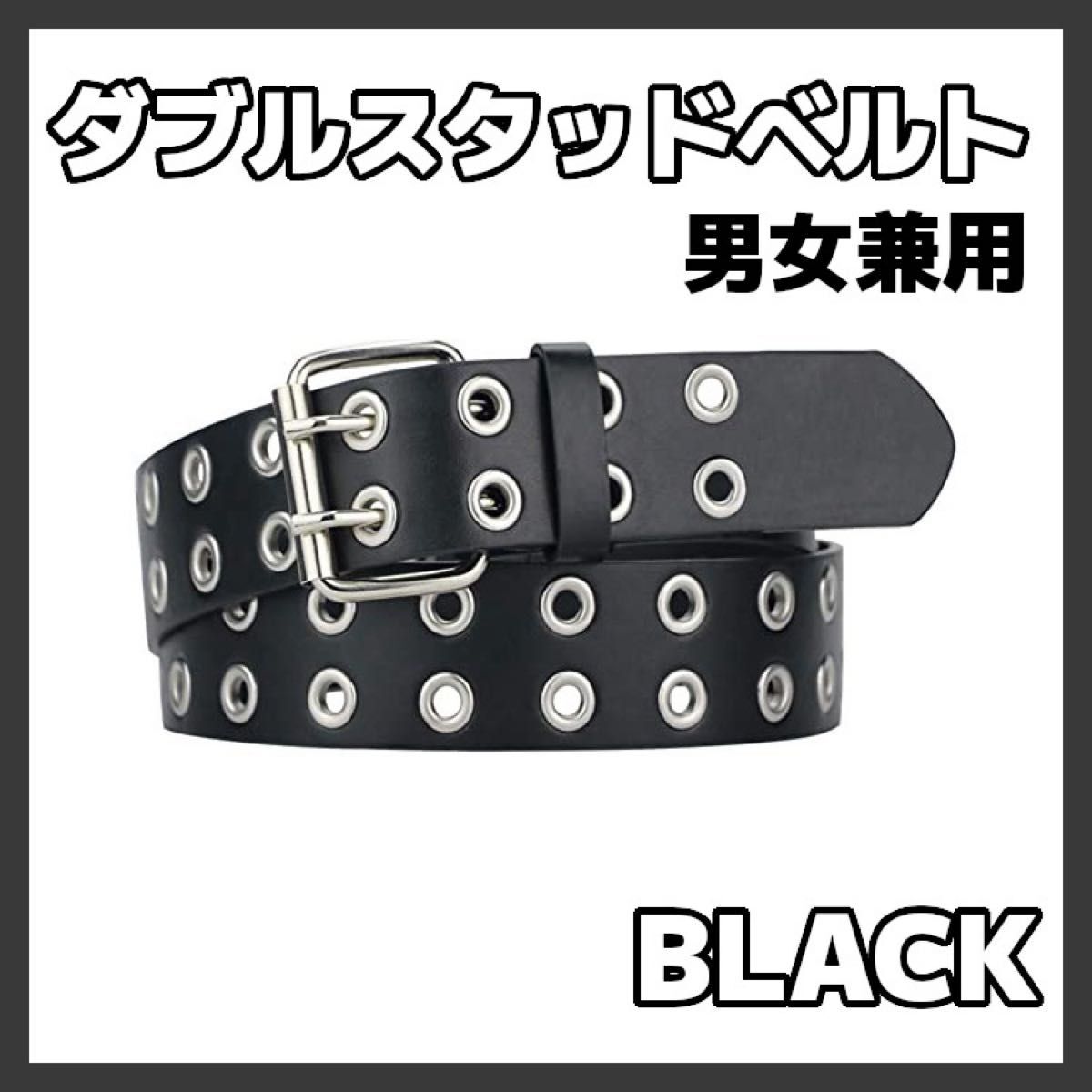 (1316)ダブルハトメベルト y2k ダブルピンベルト スタッズベルト グランジ 黒