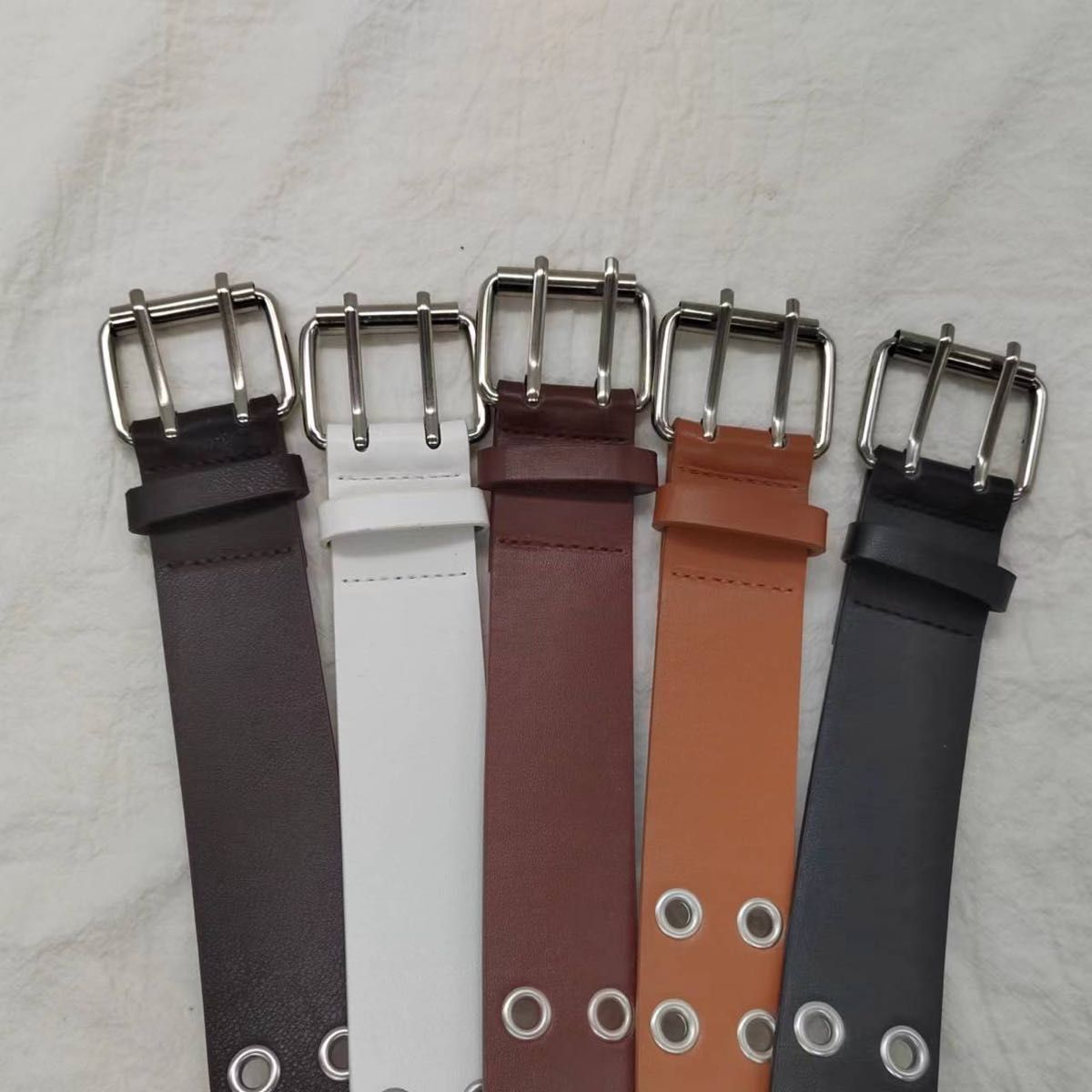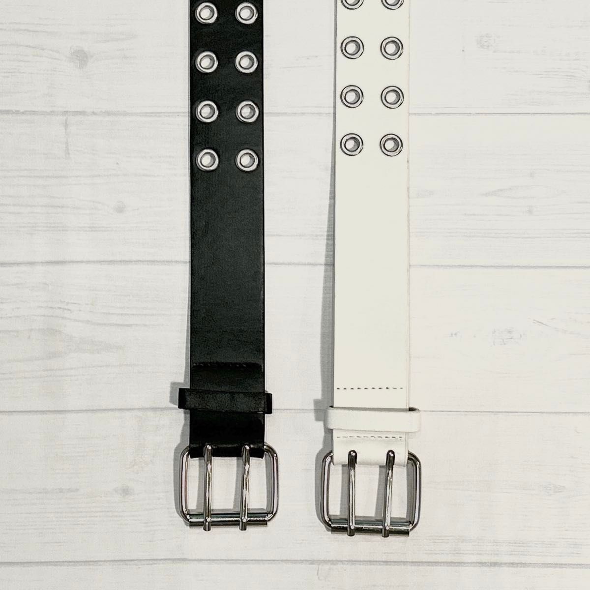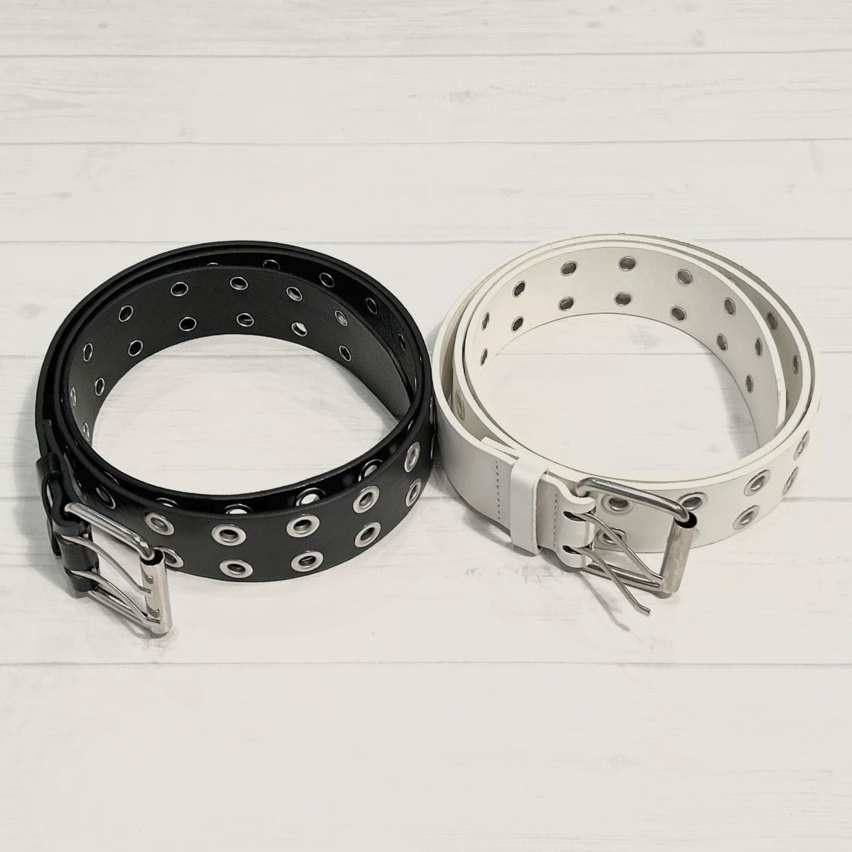 ダブルハトメベルト y2k ダブルピンベルト スタッズベルト グランジ 白 黒 シンプル 合わせやすい アクセント ベルト ホワイト ブラック スタッズベルト ゴルフベルト 男女兼用