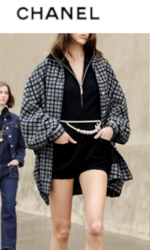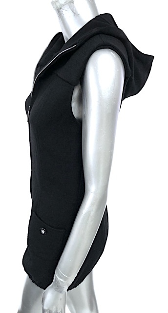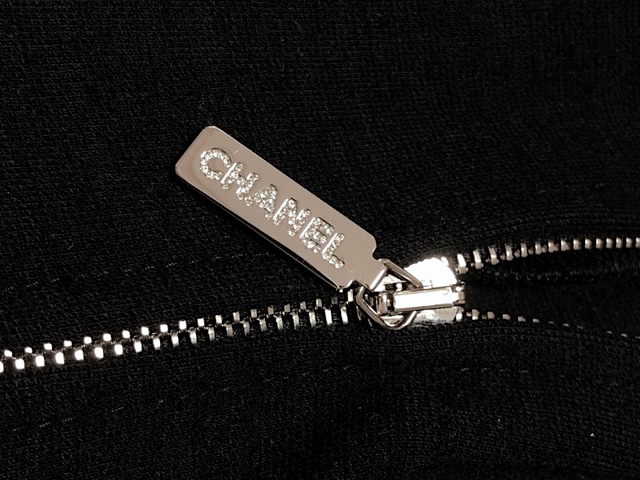 洗練されたブラックカラーに、胸元のココマークのジップチャームが目を引くデザイン。ジップアップのフーディースタイルで、カジュアルながらもシャネルらしい上品さを兼ね備えています。