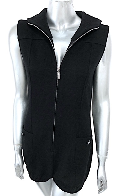 CHANEL traje de una pieza Coco mark con capucha cremallera lana seda negro 38
