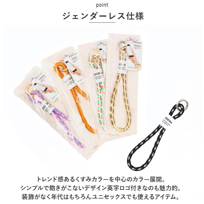 | 商品説明 | ・・パチッと来る静電気を軽減するスマートフォンストラップ♪ ・【静電気対策】 ・物に触れたらパチッと来る嫌な静電気を軽減。スマホを持つだけで手軽に静電気対策◎ ・【ジェンダーレス仕様】 ・トレンド感あるくすみカラーを中心のカラー展開。シンプルで飽きがこないデザイン英字ロゴ付きなのも魅力的。 ・装飾がなく年代はもちろんユニセックスでも使えるアイテム。 ・【簡単取り付け】 ・付属のチップをスマホケースに挟み、ハトメにストラップを取り付けるだけ◎ ・【取り外し自由】 ・付属のチップやストラップは取り外しもしやすく、シーンに合わせて着脱がスムーズ! |