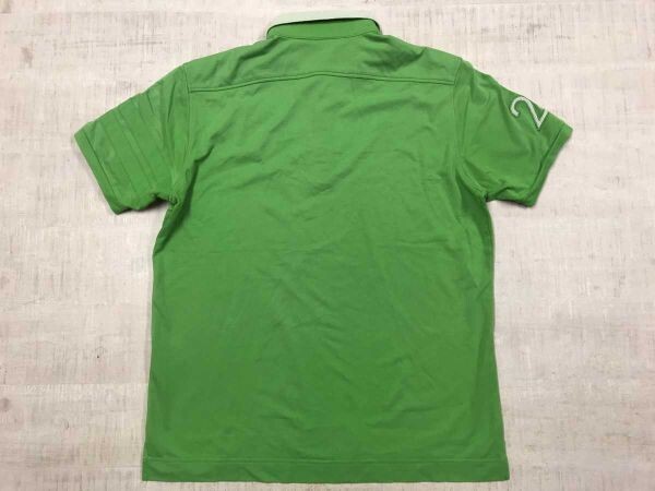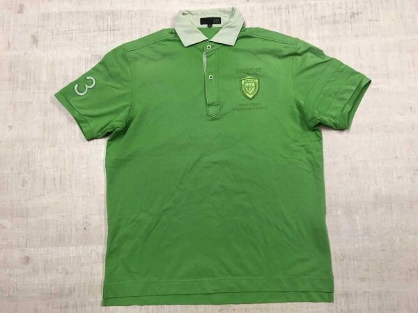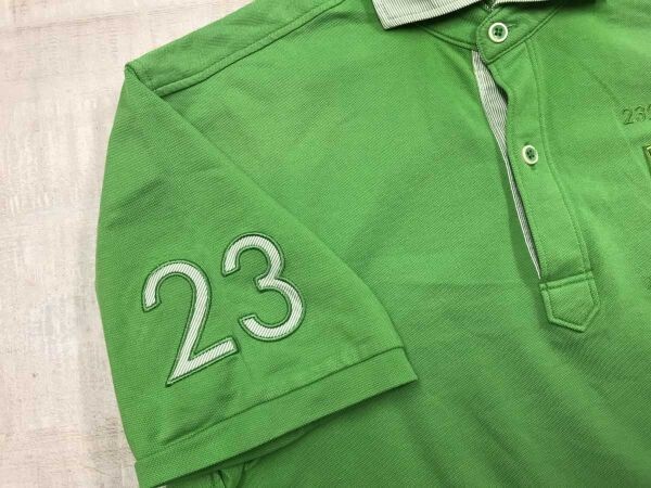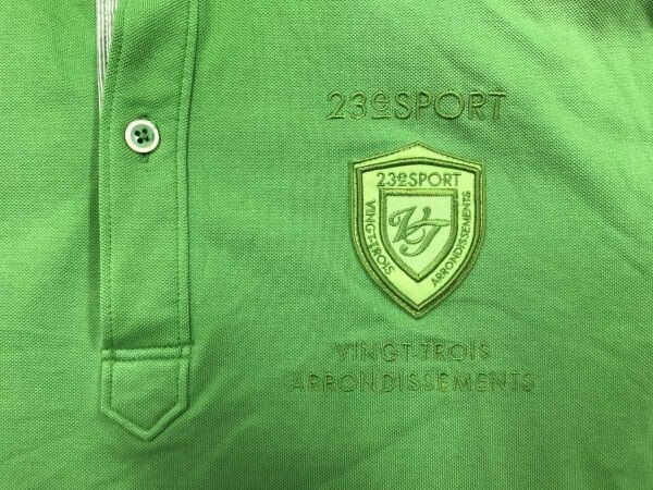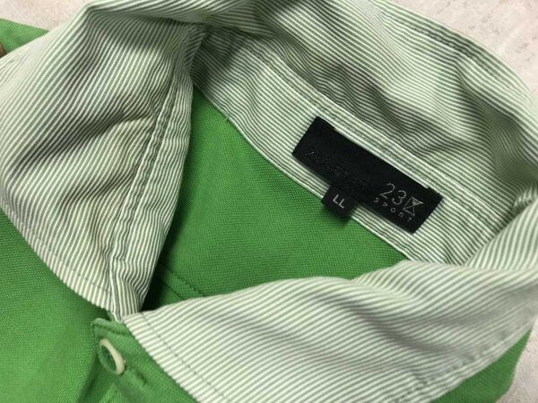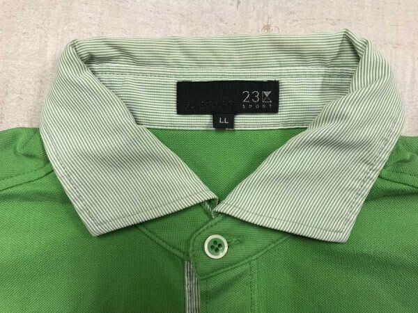 23区 NIJYUSANKU レトロ トラッド スポーツ ゴルフ 袖ボーダー エンブレム刺繍 鹿の子 半袖ポロシャツ メンズ LL 黄緑 です。