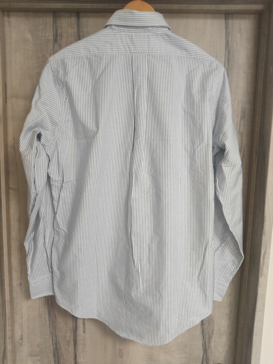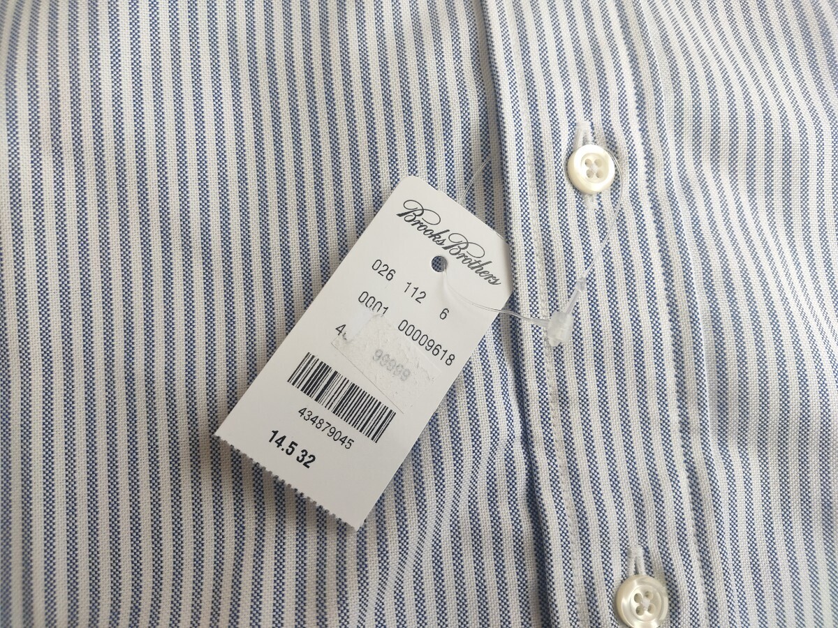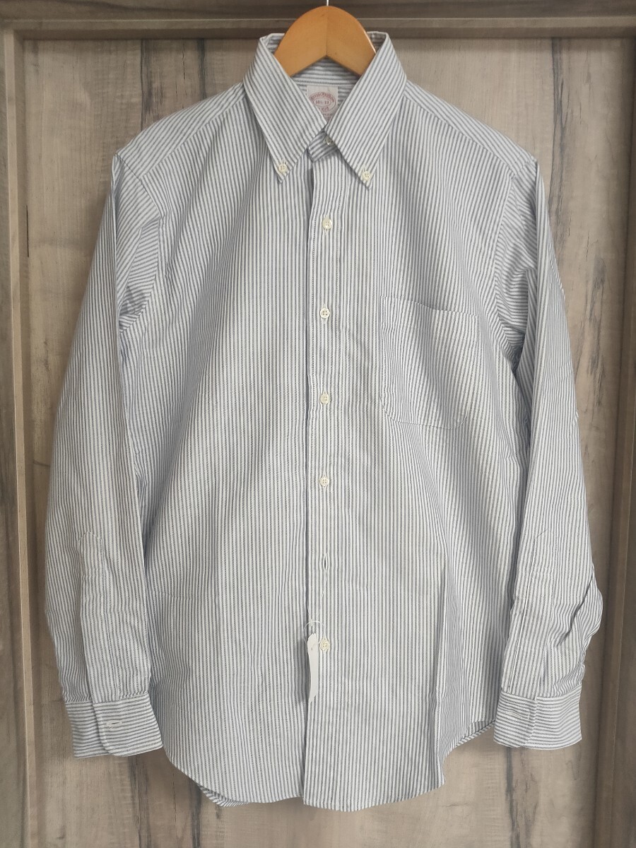 BROOKS BROTHERSのストライプボタンダウンシャツです。色は白×青、素材は100% SUPIMA COTTONのオックスフォード地です。アメリカ製です。近年のモデルです。